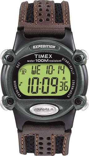{"about_product": ["Adjustable brown 20mm genuine leather strap with black nlyon accents fits up to 8-inch wrist circumference", "100-hour chronograph with lap & split times; 24-hour countdown timer; month, day & date calendar", "3 daily, weekday or weekend alarms with 5-minute backup; 24-hour military time mode; 2 time zones", "Black & green 39mm resin case with acrylic lens; green digital display; Indiglo light-up watch dial", "Water-resistant to 100m (330 ft): In general, suitable for snorkeling, as well as swimming, but not diving"], "product_description": "", "product_information": {"ASIN": "B0000TIJ72", "Batteries": "1 Lithium Metal batteries required. (included)", "Department": "womens", "Manufacturer": "Timex", "Customer Reviews": "4.4 4.4 out of 5 stars \n\n (2,999)", "Best Sellers Rank": "#61,944 in Clothing, Shoes & Jewelry (See Top 100 in Clothing, Shoes & Jewelry) #151 in Women's Wrist Watches #651 in Women's Shops", "Item model number": "T48042", "Product Dimensions": "5 x 5 x 5 inches; 1.12 ounces", "Date First Available": "October 1, 2001", "Is Discontinued By Manufacturer": "No"}, "product_details": {"Material": "Resin"}}