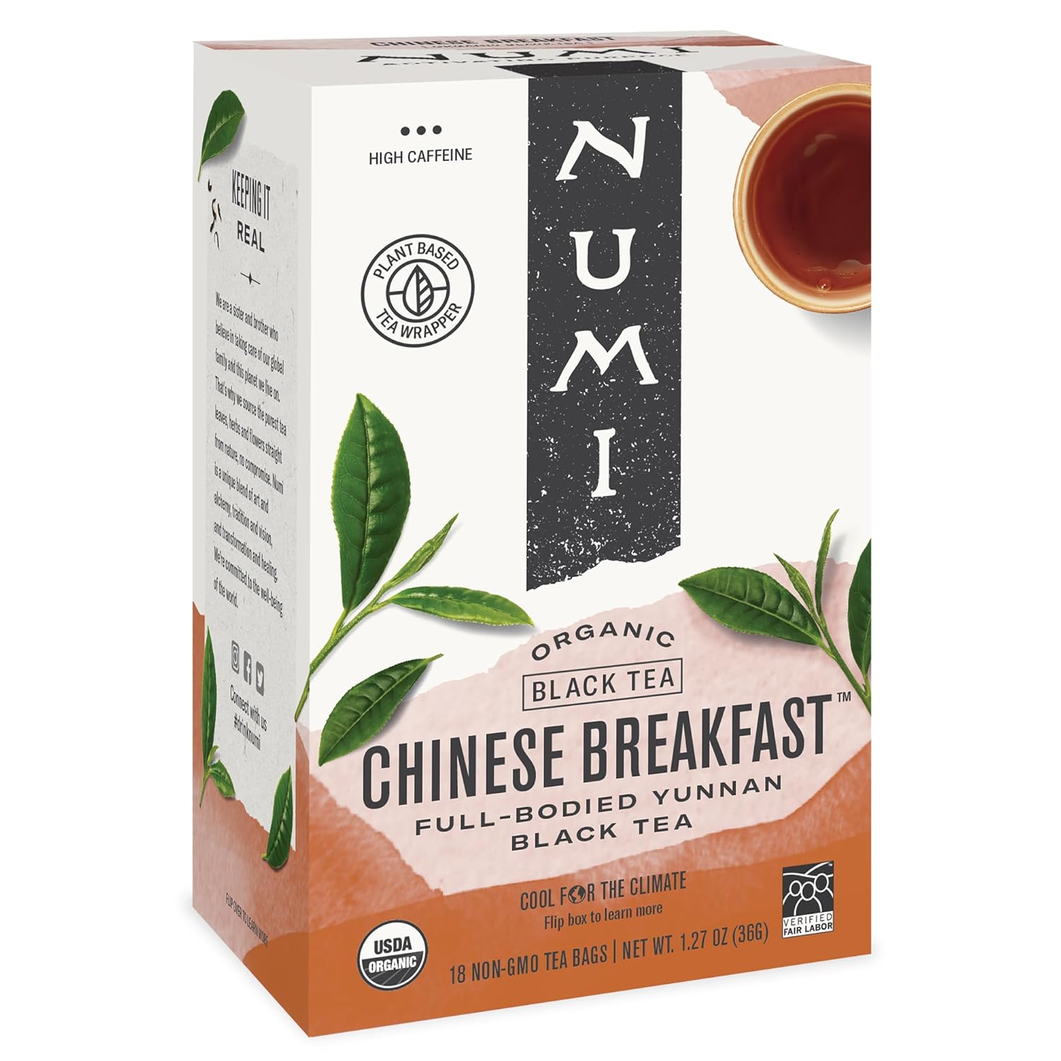 {"about_product": ["Breakfast Tea: Our Chinese Breakfast black tea includes the flavorful golden tips of the tea leaves to create this gourmet Yunnan style of tea; It is malty and full-bodied with lingering floral notes", "Full-bodied Yunnan black tea", "Gluten free", "Numi Chinese Breakfast Yunnan Black Tea"], "product_description": "Numi Organic Black Tea", "product_information": {"UPC": "680692101065", "ASIN": "B000FZYSVC", "Units": "18 Count", "Department": "Teas", "Manufacturer": "Numi", "Customer Reviews": "4.6 4.6 out of 5 stars \n\n (3,394)", "Best Sellers Rank": "#3,212 in Grocery & Gourmet Food (See Top 100 in Grocery & Gourmet Food) #28 in Black Tea", "Item model number": "680692601060", "Product Dimensions": "6 x 6 x 6 inches; 1.27 ounces", "Is Discontinued By Manufacturer": "No"}, "product_details": {"Brand": "Numi", "Flavor": "Chinese Breakfast", "Item Form": "Teabags", "Unit Count": "18 Count", "Tea Variety": "Black"}}