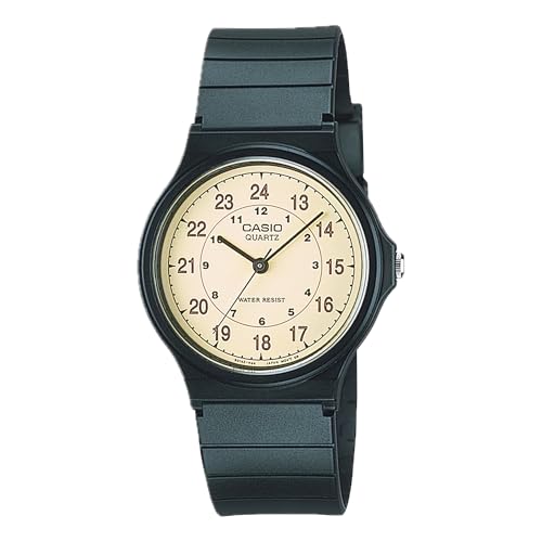 {"about_product": ["Lightweight Classic Design: Features a slim resin case with a sleek, timeless look, weighing only 20g for comfortable, all-day wear.", "Three-Hand Analog Timekeeping: Offers precise timekeeping with hour, minute, and second hands for straightforward functionality.", "Durable Resin Construction: Includes a resin case, band, and scratch-resistant resin glass for everyday reliability.", "Water Resistant for Everyday Use: Designed to handle splashes and rain, making it ideal for daily wear and light outdoor activities.", "Accurate Quartz Movement: Delivers timekeeping accuracy of ±20 seconds per month, powered by a reliable quartz mechanism.", "Long-Lasting Battery Life: Runs on an SR626SW battery, offering approximately 3 years of hassle-free performance."], "product_description": "", "product_information": {"ASIN": "B000GAWSHM", "Language": "English", "Batteries": "1 Lithium Metal batteries required. (included)", "Department": "mens", "Manufacturer": "CASIO", "Customer Reviews": "4.4 4.4 out of 5 stars \n\n (29,904)", "Best Sellers Rank": "#6,958 in Clothing, Shoes & Jewelry (See Top 100 in Clothing, Shoes & Jewelry) #21 in Men's Wrist Watches", "Item model number": "MQ-24", "Product Dimensions": "3.4 x 8.5 x 0.06 inches; 0.05 ounces", "Date First Available": "November 12, 2003", "Is Discontinued By Manufacturer": "No"}, "product_details": {"Material": "Stainless-steel"}}