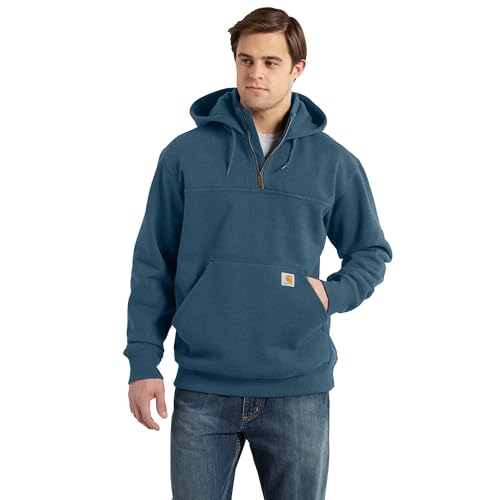 {"about_product": ["Pullover hoodie featuring standing collar with zipper and kangaroo pocket with logo patch", "Three-piece hood lined in jersey and featuring drawstring", "Hidden security pocket at inner kangaroo pocket; Machine wash cold with like colors, Do not bleach, Tumble dry low remove promptly", "Hidden security pocket at inner kangaroo pocket"], "product_description": "The heavyweight champion of sweatshirts is made of 13-ounce, 75% cotton/25% polyester fabric and has a Rain Defender durable water-repellent finish. The zip-mock collar has an 8-inch antique-finish brass zipper. It is designed with spandex-reinforced rib-knit cuffs and waistband to keep the cold out. There's an attached three-piece jersey-lined hood with draw cord and front hand-warmer pocket. The Carhartt logo is embroidered on the front left pocket.", "product_information": {"ASIN": "B0DK27SSZJ", "Department": "mens", "Manufacturer": "Carhartt", "Customer Reviews": "4.8 4.8 out of 5 stars \n\n (23,915)", "Best Sellers Rank": "#26 in Clothing, Shoes & Jewelry (See Top 100 in Clothing, Shoes & Jewelry) #1 in Men's Fashion Hoodies & Sweatshirts", "Item model number": "100617", "Date First Available": "October 14, 2024"}, "product_details": {"Origin": "Imported", "Fabric type": "55% Cotton, 45% Polyester", "Closure type": "Pull On", "Care instructions": "Machine Wash"}}