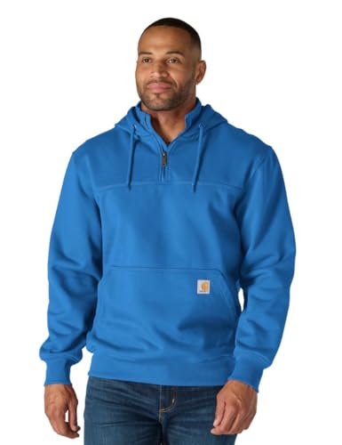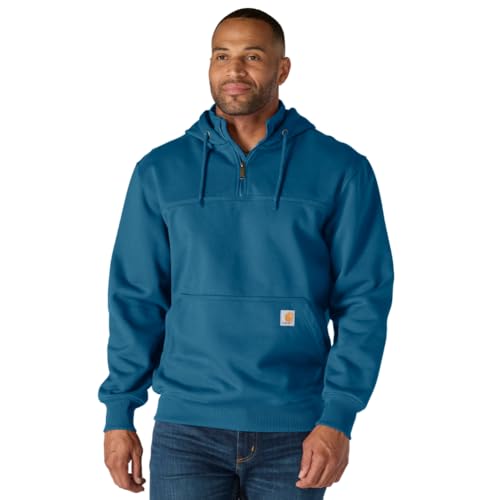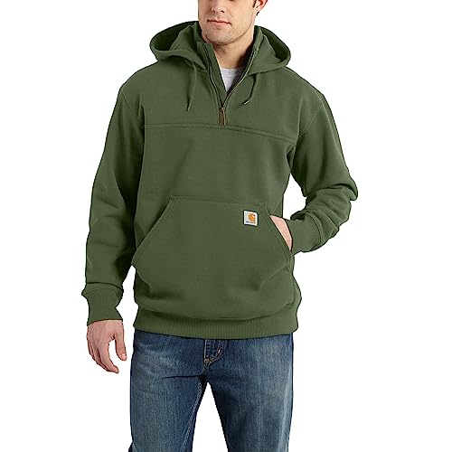 {"about_product": ["Pullover hoodie featuring standing collar with zipper and kangaroo pocket with logo patch", "Three-piece hood lined in jersey and featuring drawstring", "Hidden security pocket at inner kangaroo pocket"], "product_description": "The heavyweight champion of sweatshirts is made of 13-ounce, 75% cotton/25% polyester fabric and has a Rain Defender durable water-repellent finish. The zip-mock collar has an 8-inch antique-finish brass zipper. It is designed with spandex-reinforced rib-knit cuffs and waistband to keep the cold out. There's an attached three-piece jersey-lined hood with draw cord and front hand-warmer pocket. The Carhartt logo is embroidered on the front left pocket.", "product_information": {"ASIN": "B0DK27SSZJ", "Department": "mens", "Manufacturer": "Carhartt", "Customer Reviews": "4.8 4.8 out of 5 stars \n\n (23,915)", "Best Sellers Rank": "#26 in Clothing, Shoes & Jewelry (See Top 100 in Clothing, Shoes & Jewelry) #1 in Men's Fashion Hoodies & Sweatshirts", "Item model number": "100617", "Date First Available": "October 14, 2024"}, "product_details": {"Origin": "Imported", "Fabric type": "70% Cotton, 30% Polyester", "Closure type": "Pull On", "Care instructions": "Machine Wash"}}