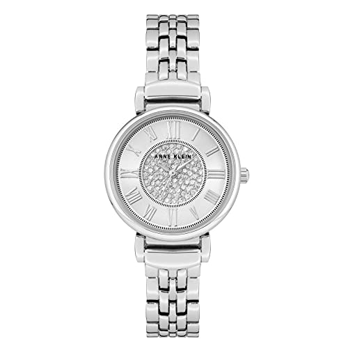 {"about_product": ["Silver-tone watch featuring ribbed outer dial with applied Roman numeral indices and brushed inner dial with short hands and logo", "30 millimeter metal case with mineral dial window", "Japanese quartz movement with analog display", "Alloy bracelet with jewelry clasp closure", "Water resistant to 30 meter (99 feet): In general, withstands splashes or brief immersion in water, but not suitable for swimming"], "product_description": "Scratch resistant mineral crystal lens and Japanese quartz movement.", "product_information": {"ASIN": "B00ZHNQQ26", "Batteries": "1 C batteries required. (included)", "Department": "womens", "Manufacturer": "AK Anne Klein", "Customer Reviews": "4.5 4.5 out of 5 stars \n\n (16,241)", "Best Sellers Rank": "#15,564 in Clothing, Shoes & Jewelry (See Top 100 in Clothing, Shoes & Jewelry) #37 in Women's Wrist Watches", "Item model number": "AK/2159SVSV", "Product Dimensions": "3.15 x 3.15 x 3.15 inches; 4.59 ounces", "Date First Available": "September 24, 2015", "Is Discontinued By Manufacturer": "No"}, "product_details": {"Material": "Metal"}}