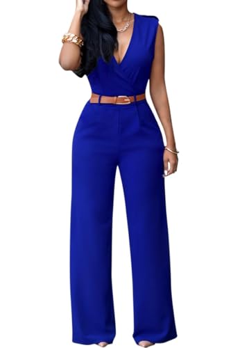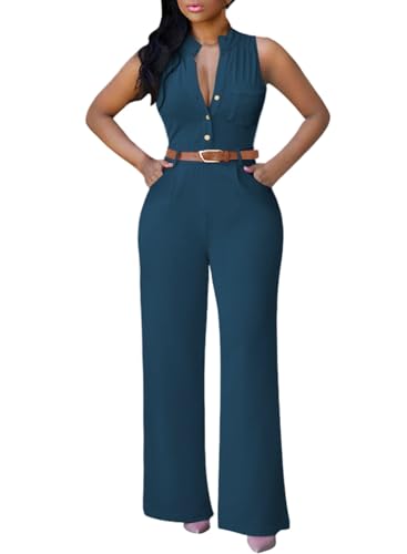 {"about_product": ["Chic V-Neck Style: Women's sleeveless V-neck jumpsuit perfect for casual office or evening occasions", "Functional Pockets: Wide leg jumpsuit with two convenient side pockets, blending practicality with a polished, professional look", "Adjustable Belt: one pice jumpusit includes a matching removable belt, allowing a customizable fit and enhanced waist definition. invisible side zipper", "Premium Comfort: Made from soft, breathable,stretchy fabric with a relaxed wide-leg cut, ensuring all-day comfort and effortless elegance", "Versatile Wear: jumpsuit great for daily,dating,work, business meetings, or semi-formal events; easily transitions from day to night with heels or flats"], "product_description": "Pink Queen Women's Elegant V Neck Sleeveless Button Wide Leg Long Pants Belted Dressy Rompers Jumpsuits\n\nFeature: Wrap V neck/ Sleeveless/ Wide leg long pants/ Slim fitted/ Dressy jumpsuit for women with belt\n\nSize Chart In Inches: \n\nJumpsuit Length: S58.66£¬M59.45£¬L60.24£¬XL61.02£¬2XL61.81\n\nBust: S33.86£¬M35.43£¬L37.80£¬XL40.16£¬2XL42.52\n\nWaist£ºS26.38£¬M27.95£¬L30.31£¬XL32.68£¬2XL35.04\n\nHip: S36.22£¬M37.80£¬L40.16£¬XL42.52£¬2XL44.88", "product_information": {"ASIN": "B0FZJJNTTX", "Department": "womens", "Manufacturer": "Pink Queen", "Customer Reviews": "4.1 4.1 out of 5 stars \n\n (14,295)", "Product Warranty": "For warranty information about this product, please click here", "Best Sellers Rank": "#37,950 in Clothing, Shoes & Jewelry (See Top 100 in Clothing, Shoes & Jewelry) #61 in Women's Jumpsuits", "Item model number": "Jumpsuits", "Date First Available": "May 21, 2024"}, "product_details": {"Origin": "Imported", "Fabric type": "Blended, soft, stretchy & comfy fabric", "Care instructions": "Machine Wash"}}