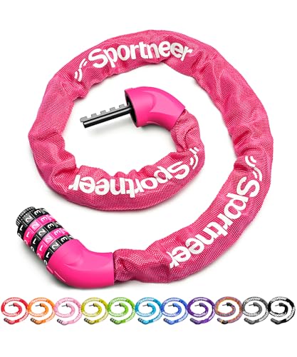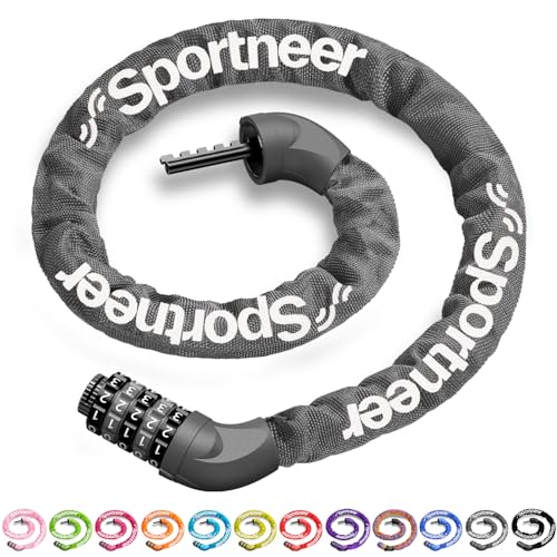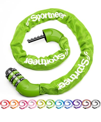{"about_product": ["High Security & Keyless Design: Say goodbye to the hassle of carrying keys and hello to keyless convenience. The advanced 5-digit combination lock offers unparalleled protection, with up to 100,000 possible combinations, making it virtually impossible to crack. This bike chain lock is the perfect choice for those who value safety and convenience above all else.", "Rock-solid & Built to Last : The Sportneer bicycle lock is as tough as nails. Crafted from ultra-thick 0.236\"/6mm manganese steel, it boasts unparalleled resistance against cutting and sawing. The lock core, made from sturdy zinc alloy, adds an extra layer of protection, thwarting any attempts at malicious cutting and ensuring long-lasting durability.", "Scratch-Resistant Cover & Dustproof Cap: The flexible high-quality polypropylene fabric cover protects your hands against heat or cold, and prevents chain from rust, and keeps the bike paint from scratches, ensuring the lock lasts for years to come. Plus, the dustproof cap is an added bonus, keeping rainwater and sand out of the lock hole.", "Convenient & Easy to Reset: Setting up and resetting your personalized combination password is a breeze. The initial password is 00000, and when it's time to set a new password, simply keep the number wheels in the correct unlock password state and rotate the reset dial 90° to set the new password. No more worry about forgetting your password or struggling to reset it again.", "Versatile Applications: With options available in lengths of 2.6ft, you can easily lock two bikes together. Better yet, this bike lock is also suitable for a wide range of applications, including bicycles, electric bikes, ladders, lawnmowers, gates, fences, toolboxes, sports equipment, and more.", "Note: The bicycle lock head diameter is 1.3 inches. Before making a purchase, ensure that the gap between the tires or the hole you need to pass through is compatible. Otherwise, you can still lock your bike by wrapping the chain around it, rather than threading it through the wheel's gap."], "product_description": null, "product_information": {"ASIN": "B0FKB8NKXC", "Size": "2.6 ft long, 0.24 in thick", "Color": "Black", "Material": "Manganese Steel, Zinc Alloy", "Brand Name": "Sportneer", "Manufacturer": "Sportneer", "Package Weight": "1.1 Pounds", "Best Sellers Rank": "#10,092 in Automotive (See Top 100 in Automotive) #2 in Powersports Alarms & Anti-Theft", "Date First Available": "July 29, 2025", "Item Package Dimensions L x W x H": "5.9 x 3.9 x 2.1 inches"}, "product_details": {"Brand": "Sportneer", "Color": "Black", "Material": "Manganese Steel, Zinc Alloy", "Manufacturer": "Sportneer"}}