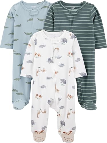 {"about_product": ["Full-Length Zipper: Full-length zipper ensures easy dressing and quick diaper changes, providing a smooth experience for both parents and babies", "Safety Chin Tab: Equipped with a safety chin tab, our sleep and play set prevents any irritation from the zipper, ensuring your baby's delicate skin remains protected and comfortable", "Fun Prints: Showcases playful and engaging prints that stimulate your baby's imagination while adding a touch of whimsy to their wardrobe", "Soft Neutral Color Palettes: Calming, neutral tones perfecting for gifting to new parents", "Versatile Use: Ideal for both sleep and playtime, these easy one-pieces keep your baby snug and stylish, making them suitable for anytime", "Easy Care: Designed for busy parents, this set is machine washable, allowing for hassle-free cleaning and maintenance"], "product_description": "This 3-Pack Neutral Unisex Sleep and Play Set from Simple Joys by Carter’s is the perfect addition to your baby's wardrobe, designed to keep your little one cozy and comfortable from day to night. Crafted from soft, breathable fabric, these one-piece outfits for baby ensure that your baby stays comfortable throughout their sleep and playtime. Each sleep and play features an easy zip-up closure that runs from the neckline to the legs, making diaper changes quick and hassle-free. The set includes three versatile pieces in adorable, neutral colors and patterns that are suitable for both baby girls and boys, making it an excellent choice for any family. The full-length design offers ample coverage while allowing for plenty of movement, making it ideal for active little explorers. With machine washable convenience, these sleep and play sets will retain their softness and vibrancy even after multiple washes, making them a practical choice for busy parents. Designed to cater to your baby's needs from newborn through early infancy, this sleep and play set provides the perfect balance of style, comfort, and functionality for every occasion.", "product_information": {"ASIN": "B0DQFJRD9B", "Department": "unisex-baby", "Manufacturer": "Carter's Simple Joys - Private Label", "Customer Reviews": "4.8 4.8 out of 5 stars \n\n (28,204)", "Best Sellers Rank": "#814 in Our Brands (See Top 100 in Our Brands) #6 in Baby Girls' Blanket Sleepers #6 in Baby Boys' Blanket Sleepers", "Item model number": "45394cbb-99b4-4e12-a020-e65bcc7153c6", "Date First Available": "May 15, 2025"}, "product_details": {"Origin": "Imported", "Fabric type": "100% Cotton", "Care instructions": "Machine Wash"}}