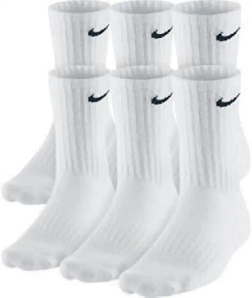 Nike Dri-Fit Classic Cushioned Crew Socks 6 PAIR White with Black Swoosh Logo) LARGE 8-12