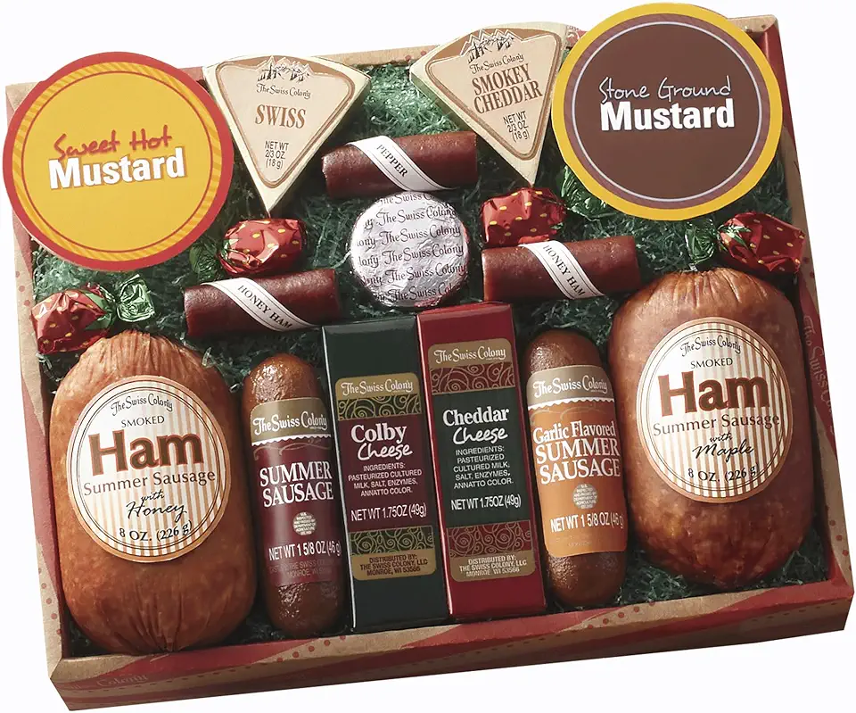 The Swiss Colony 14 Country Favorites Gift Box Assorted Summer Sausage Meats and Cheeses, Mustards, Candies, Charcuterie Food Box for Holiday or Thank You Gifts Adults, Women, Men, Charcuterie Boards