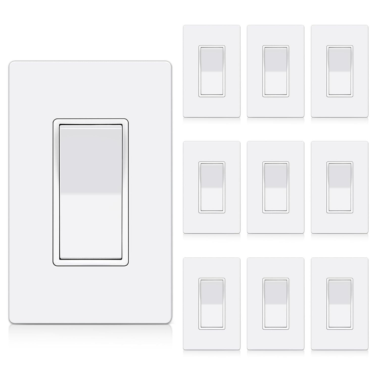 {"about_product": ["Single pole Decorator Switch: Single pole electrical light switch, rating 15A 120-277V. Decor wallplate included. Gloss finish. UL certified", "High Quality: Crafted from impact-resistant polycarbonate thermoplastic and solid steel. A smooth, yet positive On/Off paddle action allows you to feel the quality in which every BESTTEN switch is made", "Easy Installation: Quick push-in and side wiring options available. Terminal screws accept up to 12 AWG and quick push-in wiring accepts 14 AWG solid copper wire only", "Elevate Durability: Full-rated current capacity with tungsten, fluorescent or resistive loads. Motor capacity is 80% of switch rating", "Sleek & Modern Design: The modern look of a decor switch can enhance the style of anywhere a switch is needed"], "product_description": null, "product_information": {"ASIN": "B07BPVRMHC", "Manufacturer": "WENZHOU HUAYA ELECTRIC CO LTD", "Customer Reviews": "4.5 4.5 out of 5 stars \n\n (848)", "Best Sellers Rank": "#62,309 in Tools & Home Improvement (See Top 100 in Tools & Home Improvement) #223 in Electrical Light Switches", "Item model number": "LD-2001", "Product Dimensions": "2.91 x 4.69 x 1.28 inches; 0.01 ounces", "Date First Available": "February 22, 2017", "Is Discontinued By Manufacturer": "No"}, "product_details": {"Brand": "BESTTEN", "Material": "Polycarbonate", "Terminal": "Screw", "Switch Type": "Rocker", "Contact Type": "Maintained", "Connector Type": "Screw", "Current Rating": "15 Amps", "Operation Mode": "ON-OFF", "Operating Voltage": "120 Volts", "Item dimensions L x W x H": "2.91 x 4.69 x 1.28 inches"}}