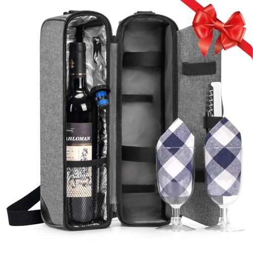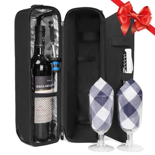 {"about_product": ["Complete Wine Picnic Set for Two:This elegant black wine tote bag includes everything you need for a perfect outing: 2 plastic wine glasses, 1 stainless steel corkscrew, 1 bottle stopper, and 2 napkins. Everything is neatly organized and ready for your next adventure.", "Keep Your Drinks Cool for Hours:Designed with a high-quality insulated cooler compartment, this bag keeps two bottles of wine or various cans chilled for 5-7 hours. Perfect for picnics, beach trips, or wine tours.", "Stylish & Functional Design:The sleek black exterior is both stylish and practical, featuring an adjustable shoulder strap for easy carrying. Whether you're heading to the park or a friend's house, this bag is your ultimate portable companion.", "Perfect Size for On-the-Go:With outer dimensions of 13.4 x 7.5 x 7.1 inches (Height 34cm, Width 7.5cm, Length 18cm), this compact wine tote fits easily in your car or storage space without taking up too much room.", "Ideal Gift for Wine Lovers:This wine tote set makes a thoughtful gift for any occasion. Please note: The wine shown in photos is for display purposes only and is not included."], "product_description": null, "product_information": {"UPC": "752058100811", "ASIN": "B07DGWB7YY", "Brand": "ALLCAMP OUTDOOR GEAR", "Color": "Black", "Style": "1 Bottle", "Material": "Polyester", "Item Weight": "1.5 pounds", "Best Sellers Rank": "#3,046 in Kitchen & Dining (See Top 100 in Kitchen & Dining) #3 in Wine Accessory Sets", "Item model number": "TWPB-3014A16AP", "Product Dimensions": "3.5\"D x 8\"W x 14.5\"H", "Date First Available": "June 2, 2018", "Is Discontinued By Manufacturer": "No"}, "product_details": {"Brand": "ALLCAMP OUTDOOR GEAR", "Color": "Black", "Style": "1 Bottle", "Material": "Polyester", "Product Dimensions": "3.5"D x 8"W x 14.5"H"}}