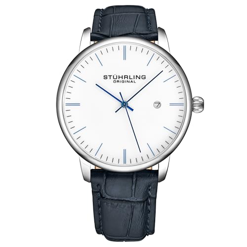 {"about_product": ["Minimalist design brings a sleek elegance to any wrist", "Ultra slim profile has minimal weight and bulk combined with genuine leather band provides maximum comfort", "Quick set date window for easy functionality while maintaining an uncluttered watch dial", "Versatile, expressive style pairs well with both casual and professional attire, making this a timepiece for all occasions", "40mm stainless steel case, 7mm thickness, quartz movement, Krysterna crystal, date display, black leather strap, water resistant to 50m."], "product_description": null, "product_information": {"ASIN": "B07DM6SF35", "Batteries": "1 Nonstandard Battery batteries required. (included)", "Department": "Mens", "Manufacturer": "Stuhrling Original", "Customer Reviews": "4.5 4.5 out of 5 stars \n\n (1,318)", "Product Warranty": "For warranty information about this product, please click here", "Best Sellers Rank": "#66,844 in Clothing, Shoes & Jewelry (See Top 100 in Clothing, Shoes & Jewelry) #258 in Men's Wrist Watches #577 in Men's Shops", "Item model number": "3997Z", "Product Dimensions": "1.18 x 1.57 x 0.28 inches; 10.58 ounces", "Date First Available": "April 11, 2018", "Is Discontinued By Manufacturer": "No"}, "product_details": {"Clasp type": "Buckle", "Item width": "40 millimeters", "Item display length": "11 inches"}}