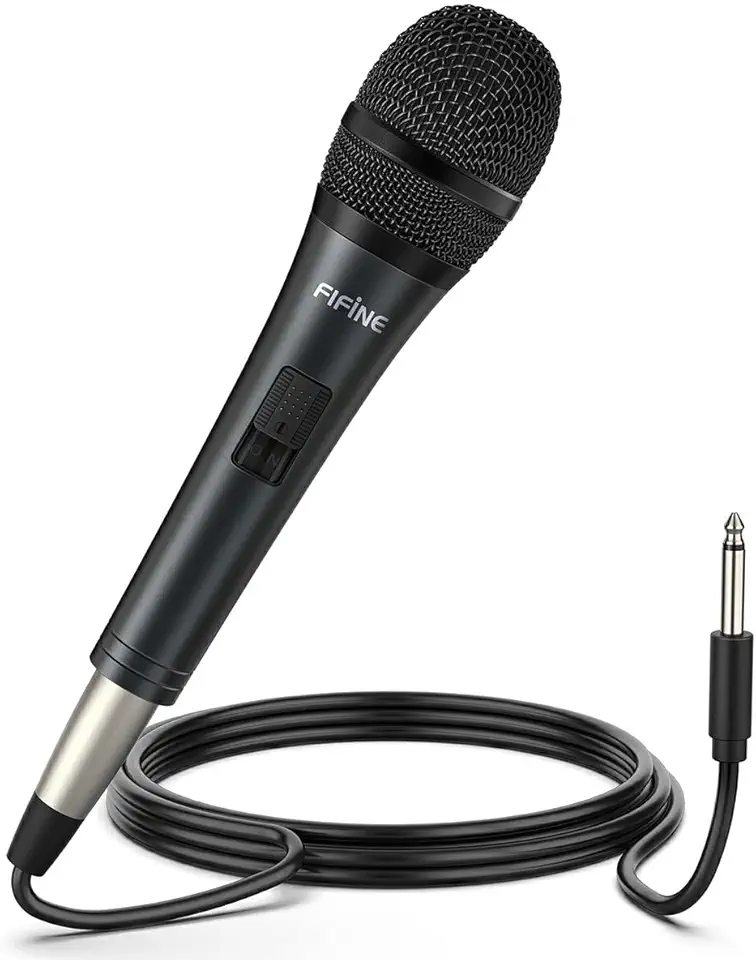 FIFINE Karaoke Microphone, Dynamic Vocal Microphone for Speaker, 6.35MM Wired Handheld Mic with On and Off Switch and 14.8ft Detachable Cable-K6 Global Recycled Standard