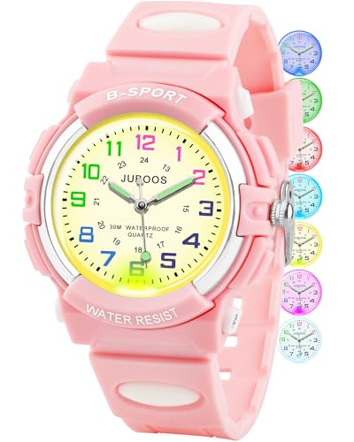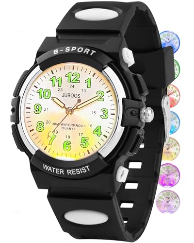 {"about_product": ["Precise Time: Kids watch for boys girls use Japanese-Quartz Movement to provide precise and accurate time keeping; top quality battery to provide continous power for watch to long lasting using", "Time Teaching Watch: Analog watch for kids clear and large dial, easy to read, traditional children's analog watch allows children to learn to see the time and develop their sense of time, which is important for their education", "Waterproof Analog Watch for Kids: 30M/98FT waterproof, suitable for daily waterproof, such as hand washing, rain, etc. Be careful not to press any buttons or dive in the water as it will damage the waterproof rubber ring of the watch", "Comfortable to Wear:Adjustable TPU strap, the bottom of the watch has a wrist pad to provide children with a comfortable and safe to wear, simple and stylish watch for boys girls, suitable for children aged 5-8 9-14 years old to learn time", "Good Presents: Juboos kids wirst watch comes with beautiful present packaging, making it even more suitable as a present for childrenThis simple time teaching watch is fit for kids at school or for leisure and sports"], "product_description": null, "product_information": {"ASIN": "B07J696ZN4", "Batteries": "1 9V batteries required. (included)", "Department": "girls", "Manufacturer": "Juboos", "Customer Reviews": "4.4 4.4 out of 5 stars \n\n (2,864)", "Product Warranty": "For warranty information about this product, please click here", "Best Sellers Rank": "#9,474 in Clothing, Shoes & Jewelry (See Top 100 in Clothing, Shoes & Jewelry) #10 in Girls' Wrist Watches", "Item model number": "412", "Package Dimensions": "10.12 x 2.24 x 0.75 inches; 1.12 ounces", "Date First Available": "October 11, 2018", "Is Discontinued By Manufacturer": "No"}, "product_details": {"ASIN": "B07J696ZN4", "Batteries": "1 9V batteries required. (included)", "Department": "girls", "Manufacturer": "Juboos", "Customer Reviews": "4.4 4.4 out of 5 stars \n\n (2,864)", "Product Warranty": "For warranty information about this product, please click here", "Best Sellers Rank": "#9,474 in Clothing, Shoes & Jewelry (See Top 100 in Clothing, Shoes & Jewelry) #10 in Girls' Wrist Watches", "Item model number": "412", "Package Dimensions": "10.12 x 2.24 x 0.75 inches; 1.12 ounces", "Date First Available": "October 11, 2018", "Is Discontinued By Manufacturer": "No"}}