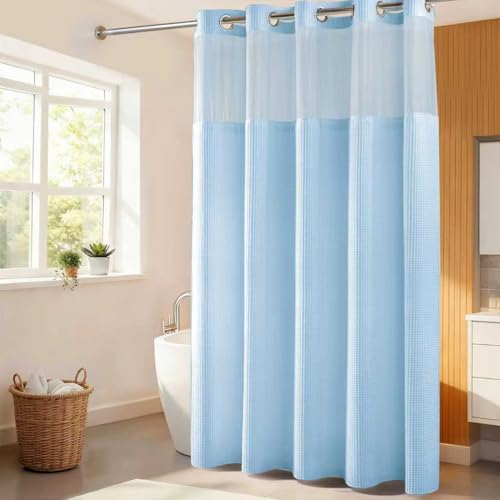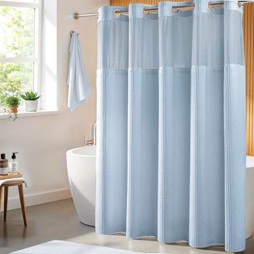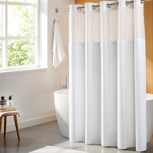 {"about_product": ["This shower curtain designed with \"Split Rings\" that let you hang them easily. No need to buy hooks and no need to remove the rod", "Package Included: 1 Shower curtain and 1 fabric snap-on replacement Liner", "Hotel Quality: The shower curtain and liner are made with high quality Fabric, 200gsm heavy weight to keep it in place. Water repellent treatment can repel the water inside tub", "Measures: 71\" width by 74\" length fits your standard sized bathroom, snap in liner is 70\" x 54\" (WxL)", "Water Repellent:The high-quality material used for this shower curtain is water-repellent, effectively preventing water splashes and keeping your bathroom floor dry"], "product_description": null, "product_information": {"UPC": "741025591486", "ASIN": "B07MPP7JQR", "Size": "71\"W x 74\"L (Pack of 1)", "Brand": "River Dream", "Color": "White", "Style": "Contemporary", "Theme": "Solid", "Opacity": "Semi-sheer", "Pattern": "Waffle Weave", "Seasons": "All Season", "Material": "Cotton Blend", "Room Type": "Bathroom", "Top Style": "Grommet", "Model Name": "Waffle Weave Shower Curtain Wtih Snap in Liner", "Unit Count": "1.0 Count", "Weave Type": "Waffle", "Fabric Type": "Shower Curtain: 35% Cotton 65% Polyester Snap in Liner: 100% Polyester", "Item Weight": "2.49 pounds", "Curtain Form": "Shower Curtain", "Manufacturer": "River Dream", "Hanging Method": "Grommet", "Package Weight": "1.13 Kilograms", "Number of Items": "1", "Special Feature": "Magnets, Sheer Window, Snap-in Liner, Split Ring", "Best Sellers Rank": "#30,697 in Home & Kitchen (See Top 100 in Home & Kitchen) #49 in Shower Curtain Sets", "Item model number": "RG-05", "Lining Description": "Polyester Lining", "Product Dimensions": "74\"L x 71\"W", "Included Components": "Liner", "Date First Available": "January 3, 2019", "Indoor/Outdoor Usage": "Indoor", "Age Range (Description)": "Adult", "Product Care Instructions": "Machine Wash", "Specific Uses For Product": "Decorative", "Recommended Uses For Product": "Indoor", "Is Discontinued By Manufacturer": "No"}, "product_details": {"Brand": "River Dream", "Color": "White", "Opacity": "Semi-sheer", "Material": "Cotton Blend", "Product Dimensions": "74"L x 71"W"}}