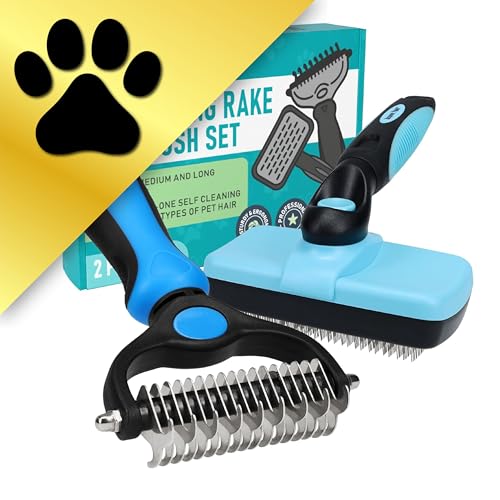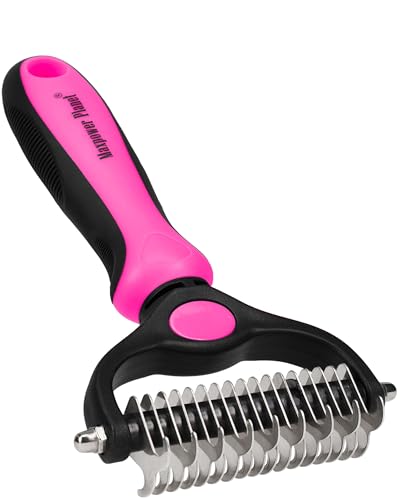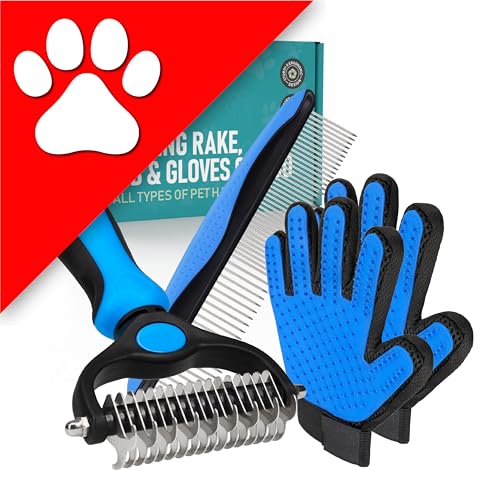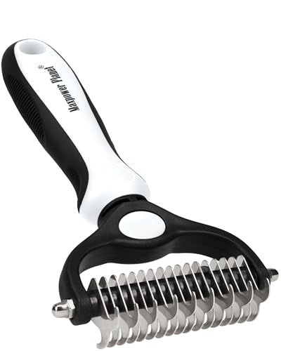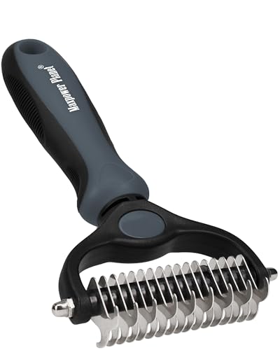 {"about_product": ["USA OWNED AND OPERATED: From our home in Florida, we’ve proudly sold over 1 million grooming rakes to pet parents nationwide. We’re deeply committed to creating products that not only care for your pets but also help strengthen the special bond you share with them.", "DUAL-SIDED DESIGN: Our grooming brush is perfect for dematting and deshedding your pet's coat! With a dual-sided design, use the 9-teeth side to tackle stubborn mats and tangles and the 17-teeth deshedding tool side to thin out your pet's fur. Gently desheds and removes loose hair and eliminates tangles, knots, dander, and trapped dirt keeping your dog looking their best.", "EFFECTIVE DESHEDDING TOOL & COMFORTABLE TO USE: The perfect cat brush or dog grooming brush solution for pets with thick fur or dense double coats. This grooming rake for dogs is designed with a lightweight, comfortable, non-slip rubber handle to keep the brush from moving around as you groom your pet.", "NOT INTENDED FOR SHORT HAIRED CATS OR SHORT COAT DOG BREEDS: Our rake is designed specifically for long coats, wiry coats, and double coats. The deshedding rake for dogs and cats allows you to easily and safely remove mats, tangles, knots, and loose hair when used as directed. For use on long haired and thick coat breeds of pets.", "INSTRUCTIONS ON HOW TO USE: Using minimal pressure, glide along fur to remove tangles, and mats. 9 Teeth side for dematting and 17 for deshedding. When using on loose skin, be sure to pull loose skin tight to prevent catching on the blade. Its important to let the rake do the work and to use short gentle strokes on your pet."], "product_description": null, "product_information": {"UPC": "850050643067", "ASIN": "B07P2N8HQH", "Manufacturer": "Maxpower Planet", "Customer Reviews": "4.6 4.6 out of 5 stars \n\n (82,052)", "Best Sellers Rank": "#613 in Pet Supplies (See Top 100 in Pet Supplies) #1 in Dog Grooming Rakes", "Item model number": "PGT-002", "Product Dimensions": "6.6 x 3.9 x 2 inches; 4 ounces"}, "product_details": {"Brand": "Maxpower Planet", "Color": "Blue", "Shape": "Oblong", "Handle Material": "Rubber", "Bristle Material": "Stainless Steel"}}