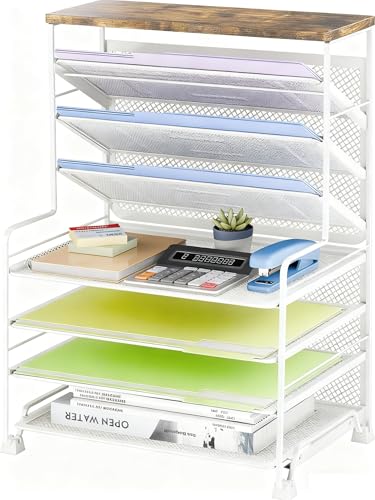 {"about_product": ["【Multifunctional】 The desktop organizer has 2 storage boxes and 1 pen box, you can store many office supplies, such as pens, scissors, staplers, etc. Perfect for office, bookcase, home, etc", "【Quality Material】 The Office Supplies Desktop Organizer is made of lightweight and durable metal mesh and reinforced with a sturdy steel frame for lasting strength and reliable performance.", "【Large Capacity Organizer]】The 7-layer layered design and large capacity make the paper organizer ideal for managing a wide variety of letter-sized letters, papers, books, bills, and more. Makes it super easy for you to quickly identify the contents of each compartment!", "【Save Space]】Desktop Organizer can help you organize your desktop and help you save space better. Keep you productive at work all the time.", "【Size】16.75 \"W x 8.75 \"D x 16.75 \"H (U.S. Patent Pending)"], "product_description": null, "product_information": {"UPC": "671072257816", "ASIN": "B07R7FZ6RG", "Brand": "Simple Trending", "Color": "7 Tier Black", "Style": "7 Tier Black", "Material": "Metal Paper", "Shelf Type": "Tiered Shelf", "Finish Type": "Metal", "Item Weight": "1 pounds", "Manufacturer": "Simple Trending", "Mounting Type": "Wall Mount", "Is Customizable": "No", "Special Feature": "Sturdy", "Assembly Required": "Yes", "Best Sellers Rank": "#1,697 in Office Products (See Top 100 in Office Products) #3 in Letter Trays & Stacking Supports", "Item model number": "ST57816", "Number of Shelves": "7", "Product Dimensions": "8.75\"D x 16.75\"W x 16.75\"H", "Included Components": "Plastic Drawer organizer Rack, Assembly Manual", "Date First Available": "April 26, 2019", "Recommended Uses For Product": "Letter, Paper, Document"}, "product_details": {"Color": "7 Tier Black", "Material": "Metal Paper", "Shelf Type": "Tiered Shelf", "Special Feature": "Sturdy", "Product Dimensions": "8.75"D x 16.75"W x 16.75"H"}}