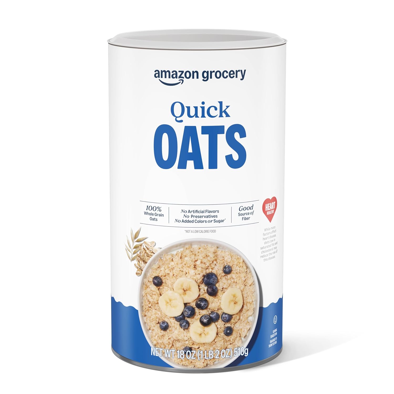 {"about_product": ["One 18 ounce container of Quick Cook Oats", "Some of your favorite Happy Belly products are now part of the Amazon Grocery brand! Although packaging may vary during the transition, the ingredients and product remain the same. Thank you for your continued trust in our brands", "Made with 100% whole grain oats", "No preservatives, no artificial flavors, no added colors or sugar", "Good source of fiber", "Amazon Grocery has all the favorites you love for less. You’ll find everything you need for great-tasting meals in one shopping trip", "Feed your every day with Amazon Grocery"], "product_description": "One 18 ounce container of Quick Cook Oats", "product_information": {"UPC": "842379163371", "ASIN": "B07TRN4WVY", "Units": "18.0 Ounce", "Manufacturer": "Amazon.com Services LLC", "Customer Reviews": "4.5 4.5 out of 5 stars \n\n (7,477)", "Best Sellers Rank": "#3,863 in Grocery & Gourmet Food (See Top 100 in Grocery & Gourmet Food) #17 in Oatmeal", "Product Dimensions": "4.13 x 4.13 x 7.25 inches; 1.25 Pounds"}, "product_details": {"Brand": "Amazon Grocery", "Flavor": "Unflavored", "Item Form": "Flaked", "Sub Brand": "Plinko", "Age Range (Description)": "Adult"}}