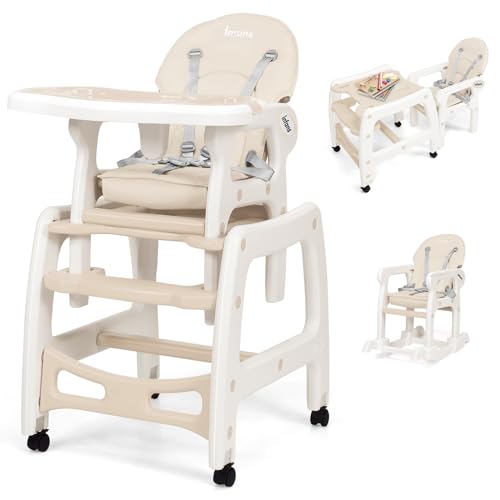 {"about_product": ["5-In -1 Convertible Baby Highchair: INFANS highchair for babies and toddlers has a multi-function design that it is not only a highchair, but also can be converted into a rocking chair or table and chair set. And the construction is also very simple to convert it into other forms. The table can be used as sturdy desk or dining table and the chair can be used as a dining chair, a rocking chair or toddler seat. Such high-usage frame makes it available for ages from 6 months to 8 years.", "Adjustable Seat Back & Trays: Our silla de comer para bebe has a user-friendly design that the seat back is adjustable with 3 positions. The 3 lever positions are ideal for baby eating, feeding and relaxing. The distances between the trays to the seat back are also adjustable with 9’’ to 12’’ to meet different needs. With such scientific structure, our infant baby highchair can make babies to use more comfortable.", "Detachable Double Trays: Considering the variable use needs, our baby highchairs has a two layers tray. The trays are also detachable, the harmless PP materials also make them easy to clean and maintain. The top tray can be used for eating which have special grooves design and can be used as cup holder and cutlery holder. The bottom tray can be used for playing. And you can also remove the trays to use it as a toddler chair.", "Stable Frame With Universal Wheels: Babies like to wiggle their bodies which require the highchair to be stable enough. Our toddler chair has scientific structural design to ensure long time durable use. We use high-quality PE materials for the main construction and there are extra reinforced connections to provide stability. Our high chairs for babies includes 4 universal wheels for easily move and the wheels are also fixable to meet different use needs.", "High-Quality & Harmless Materials: We use eco-friendly and harmless PE and PP materials as our main construction which ensure it durable and strong enough for long time daily use. And the surface of our baby high chair is smooth for easily clean and maintain. 5-point safety harness ensures security for your little baby. All the corners of our baby highchair are smooth without sharp edges to avoid extra crush injury.", "US. CPSIA & ASTM APPROVED: Made of food-grade PP, FREE from BPA, PVC, Phthalates, Lead, Latex, and Formaldehyde. No sharp points or edges. Passed the tests of stability, asphyxiation,load, and shear."], "product_description": null, "product_information": {"ASIN": "B07TZ2K7HL", "Style": "Rocking Chair Function", "Is portable": "No", "Item Weight": "17 pounds", "Material Type": "PP, PE, Sponge,Polyester", "Best Sellers Rank": "#11,153 in Baby (See Top 100 in Baby) #94 in Baby Highchairs", "Item model number": "BB5604", "Batteries required": "No", "Product Dimensions": "20 x 23 x 40.5 inches", "Material Composition": "PP, PE, Sponge", "Maximum weight recommendation": "50 Pounds"}, "product_details": {"Brand": "INFANS", "Color": "Pink", "Material": "PP, PE, Sponge,Polyester", "Item Weight": "17 Pounds", "Product Dimensions": "20"D x 23"W x 40.5"H"}}