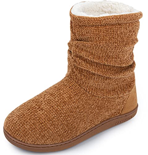 {"about_product": ["PRETTY ANKLE BOOTS - Cozy up the cold season with these attractive warm house slippers while luxe chenille knit styling adds a chic and cute touch to your comfort. Subtle scrunching along your shin for added fashion appeal. Wide opening design makes them easy to slip on", "COMFY & SOFT - Nice chenille velvet upper and fuzzy plush fleece lining hug your feet and provide toasty warmth plus ultra softness, which make you feel like walking on a cloud. When you get home from work at the end of the day, these decent house slippers are great to relax your tired feet", "CUSHION & SUPPORT - Long lasting 80D memory foam insole provides superior cushioning and padding, feels like ergonomic pillows under your feet. Supportive insole relaxes your arch and soothes common foot pains from all-day walking or standing", "VERSATILE USE - Flexible and sturdy rubber sole with traction at bottom for non-slip indoor wearing and sturdy outdoor use. Unlike regular scuffs, they come up over the ankle, which are perfect for cool evenings on the deck. They're also non-slip even on wet surfaces", "BEST GIFT CHOICE - These shoes are machine washable, which makes caring for them easily. Well made, surprisingly nice, super comfortable and great fit, these booties would be perfect as a gift for yourself or your loved ones"], "product_description": null, "product_information": {"ASIN": "B07WN8N9Q7", "Department": "womens", "Customer Reviews": "4.5 4.5 out of 5 stars \n\n (16,591)", "Product Warranty": "For warranty information about this product, please click here", "Best Sellers Rank": "#259 in Clothing, Shoes & Jewelry (See Top 100 in Clothing, Shoes & Jewelry) #19 in Women's Slippers", "Date First Available": "August 17, 2019"}, "product_details": {"Sole material": "Rubber", "Inner material": "Fleece", "Outer material": "Natural Rubber", "Fur description": "Synthetic Fleece (Fur Origin: Not Applicable)"}}