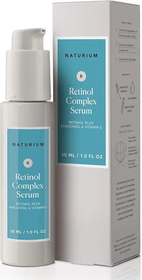 Naturium Retinol Complex Serum, Encapsulated Retinols & Bakuchiol, Refining & Smoothing Facial Serum, 1 oz
