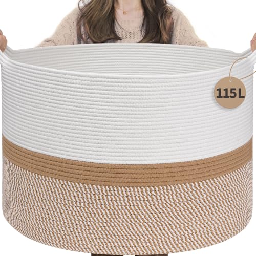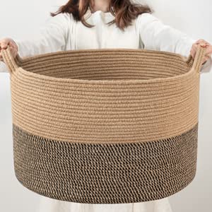 {"about_product": ["Soft Cotton Woven Thread Rope", "Spacious XXL Design: XXL size (21.7\"D x 13.8\"H) burr basket provides ample space for laundry, toys, and blankets. Cat Dog Bed Perfect for large-scale storage needs.", "High-Quality Craftsmanship: Made with soft, durable cotton rope. Slow-woven for even texture and long-lasting durability. Strong handles for easy carrying.", "Aesthetic Boho Style: Minimalist boho design in neutral colors. Matches any home decor, adding elegance to living rooms, bedrooms, and nurseries.", "Family-Friendly Material: Soft cotton rope is gentle on skin. Unlike metal or plastic, it won't scratch or hurt.", "Versatile Use: Ideal for christmas basket, toy storage, and blanket storage. Suitable for living rooms, bedrooms, nurseries, and laundry rooms. Machine washable for easy cleaning."], "product_description": null, "product_information": {"UPC": "726962316040", "ASIN": "B085HFHW42", "Size": "21.7\"D x 13.8\"H", "Brand": "INDRESSME", "Color": "White & Brown", "Shape": "Round", "Style": "Modern", "Theme": "Modern", "Pattern": "Solid", "Capacity": "83.63 Liters", "Material": "Cotton", "Room Type": "Laundry Room, Living Room", "Item Weight": "2.2 pounds", "Part Number": "rack08-XL linenINDRESSME", "Manufacturer": "INDRESSME", "Mounting Type": "Floor Mount", "Handle Material": "Cotton", "Special Feature": "Durability,Sturdy", "Number of Pieces": "1", "Special Features": "Durability,Sturdy", "Best Sellers Rank": "#259 in Baby (See Top 100 in Baby) #2 in Nursery Bins & Boxes", "Item model number": "rack08-XL linenINDRESSME", "Product Dimensions": "21.7\"L x 21.7\"W x 13.8\"H", "Batteries Included?": "No", "Batteries Required?": "No", "Included Components": "Handle", "Date First Available": "March 4, 2020", "Item Package Quantity": "1", "Number of Compartments": "1", "Specific Uses For Product": "laundry organization, storage of blankets, toys, or games, easy transportation of these items, storage of damp or dirty laundry before washing", "Recommended Uses For Product": "General storage in various rooms of the house", "Is Discontinued By Manufacturer": "No"}, "product_details": {"Size": "21.7"D x 13.8"H", "Brand": "INDRESSME", "Color": "White & Brown", "Shape": "Round", "Style": "Modern", "Material": "Cotton", "Special Feature": "Durability,Sturdy", "Number of Pieces": "1", "Product Dimensions": "21.7"L x 21.7"W x 13.8"H", "Included Components": "Handle"}}