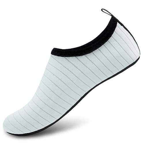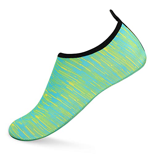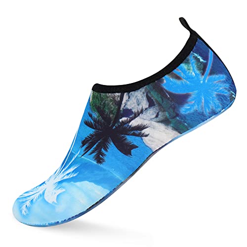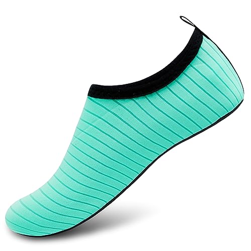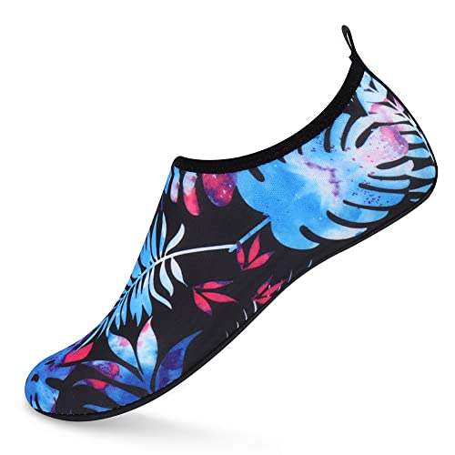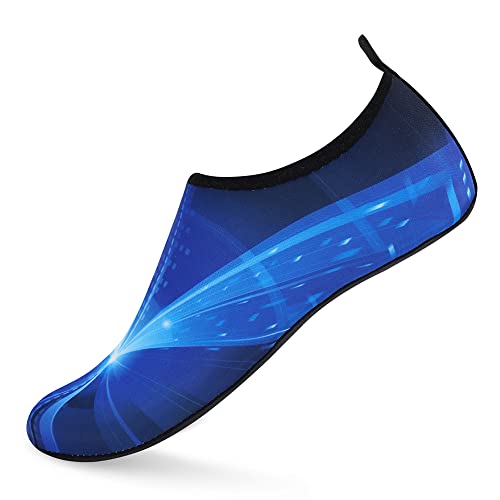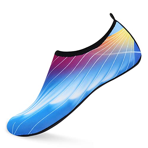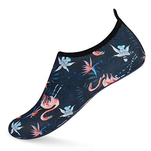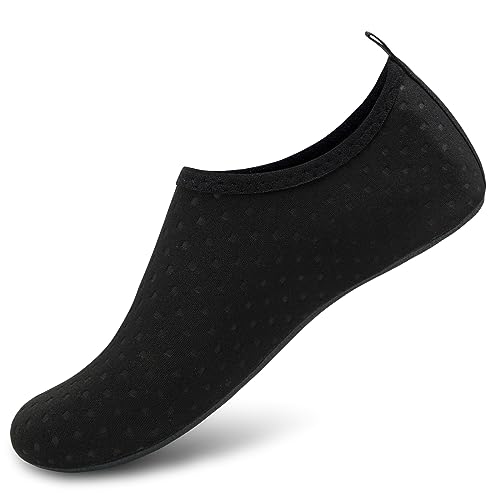 {"about_product": ["1. Safety: Anti-slip sole made of high quality material, light and durable. Thickened sole and breathable insoles with shock absorption performance, protect your feet from stepping on rock and stone.", "2. Convenience: Quick-dry water shoes, smooth neck design of aqua socks prevents chafing when wearing our water shoes. It is convenient to wear and take off. Lightweight and compressible for easy packing.", "3. Comfortable Feeling: The water sport swim shoes are ultra lightweight style and more breathable. Upper with stretch fabric for fast draining and cross ventilation, give excellent flexible and comfortable.", "4. Occasions: The water barefoot shoes for men women. Perfect for beach, swimming, surf, pool, sailing, boating, yoga, cycling, jogging, walking, fishing, car-washing, and driving.", "5. Various size and color available: Size of Swim Shoes for Women and Men.( For the length, Please Refer to Product Description). There are a variety of colorful styles to choose."], "product_description": null, "product_information": {"ASIN": "B09H3BS4QD", "Department": "unisex-adult", "Manufacturer": "ANLUKE", "Customer Reviews": "4.4 4.4 out of 5 stars \n\n (47,150)", "Product Warranty": "For warranty information about this product, please click here", "Best Sellers Rank": "#11,107 in Clothing, Shoes & Jewelry (See Top 100 in Clothing, Shoes & Jewelry) #11 in Women's Water Shoes", "Package Dimensions": "11.85 x 5.71 x 1.26 inches; 5.93 ounces", "Date First Available": "January 9, 2018"}, "product_details": {"Origin": "Imported", "Closure type": "Pull-On", "Sole material": "Rubber", "Outer material": "92% polyester+8% spandex Upper and Rubber sole"}}