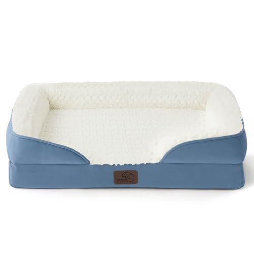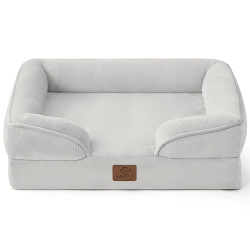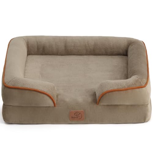 {"about_product": ["Orthopedic Support: Our orthopedic cat sofa is designed to give your pet unparalleled support for a deep, dreamy sleep. High-density egg-crate foam helps distribute weight evenly and provides the perfect amount of pressure relief and joint support.", "Enhanced Comfort: The 4-sided bolster design promotes ultimate comfort and security, offering your pet a variety of cozy positions to snuggle. The cushioned bolster shape is deeply filled to support your pet’s head and neck for a more restful sleep. And the lowered entrance protects your pet's knees and promotes accessibility.", "Waterproof & Easy Care: The durable foam mattress is encased in a waterproof liner to fully protect the foam from spills, water damage, or accidents. Remove the zippered cover in seconds and machine wash for easy care.", "Tested & Pet Approved: This supportive Pet bed is wrapped in our velvety soft flannel fabric, offering soothing comfort that your furry friend will find cozy and relaxing.", "Pet Safe Materials: This standard 100 by OEKO-TEX(24.HCN.46956) certified pet bed consists of CertiPUR-US certified foam and luxurious flannel, creating a safe and comfortable space for your furry friend to rest and recharge. The non-skid bottom reduces slips and protects your dog."], "product_description": null, "product_information": {"ASIN": "B089RGDQBB", "Size": "35\"L x 25\"W x 6.5\"Th", "Color": "Grey", "Material": "Polyester, Polyurethane foam", "Brand Name": "Bedsure", "Item Weight": "5.63 pounds", "Manufacturer": "Bedsure Comfy Pet", "Number of Items": "1", "Care Instructions": "Machine Wash", "Item model number": "CA000052G0L", "Breed Recommendation": "Large", "Date First Available": "June 10, 2020", "Age Range Description": "All Life Stages", "Item Dimensions LxWxH": "35 x 7 x 25 inches", "Target Audience Keyword": "dogs", "Item Package Dimensions L x W x H": "16.77 x 12.95 x 7.36 inches"}, "product_details": {"Brand": "Bedsure", "Material": "Polyester, Polyurethane foam", "Special Feature": "Easy to Clean, Environmentally Friendly, Orthopedic, Removable Cover, Waterproof", "Product Dimensions": "35"L x 25"W x 6.5"Th", "Breed Recommendation": "Large"}}