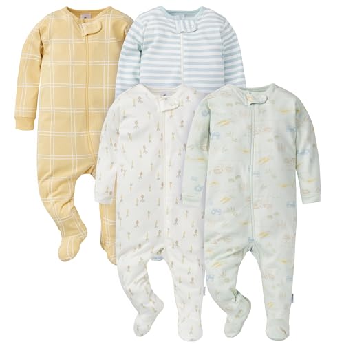 {"about_product": ["Includes four Sleep 'n Plays", "Front zippers with safety tabs for easier changes", "Sizes NB and 0-3M include mitten cuffs to prevent accidental scratches / all larger sizes do not", "Art is screenprint and puffprint", "baby clothing"], "product_description": "Gerber Sleep ‘n Plays are the ultimate footie pajamas baby is sure to love! These soft footies are made with 100% cotton, a comfortable fabric that’s perfectly breathable to prevent irritation against baby’s delicate skin. They’re appropriate to use as newborn footie pajamas as they’re made to comply with all safe sleep standards. They’re also available in sizes all the way up to 6-9M to fit older or larger babies. Each Gerber Sleep n’ Play features a zipper down the front of the outfit to allow for easy and fast diaper changes. This zipper makes the baby sleeper incredibly easy to put on as well as to take off. Atop the zipper is a safety tab with a snap to keep the zipper held in place. This reduces irritation caused by baby’s chin being poked by the zipper. These baby sleepers are footed to add extra warmth which is wonderful for sleepy time as well as if there is a chill in the air. It also means no fooling around with baby socks! These footie pajamas kids will love to wear to bed because of their supreme comfort as well as cute and fun patterns. Available in assorted colors and patterns, they’re suitable baby girl sleepers as well as baby boy sleepers. Babies love the comfortable feel and parents love how cute they look! But these Sleep n’ Plays aren’t just for sleep! They’re wonderful comforatble, casual outfits to wear during the day. They allow babies mobility and provide warmth. They’re perfect for play but are cute enough to be worn out on the town! These outfits are perfect to wear on a stroll outside, to the grocery store, to day-care, or to grandma and grandpa’s house! The possibilities are endless! The versatility of these outfits truly gives them a spectacular value that all parents will appreciate. They make an excellent gift for any baby boy or baby girl you know and love! Gerber provides high-quality products that are easy and convenient for parents as well as cute and comfortable for baby. Gerber provides safe products that parents can trust.", "product_information": {"ASIN": "B09589TB87", "Department": "baby-boys", "Manufacturer": "Gerber", "Customer Reviews": "4.7 4.7 out of 5 stars \n\n (49,856)", "Best Sellers Rank": "#856 in Clothing, Shoes & Jewelry (See Top 100 in Clothing, Shoes & Jewelry) #1 in Baby Boys' One-Piece Footies", "Date First Available": "November 7, 2019"}, "product_details": {"Origin": "Imported", "Fabric type": "100% Cotton", "Care instructions": "Machine Wash"}}