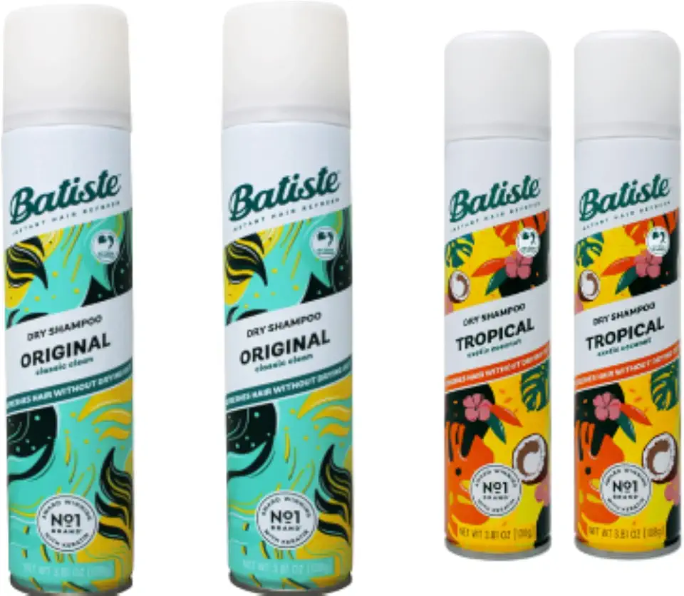 Batiste Dry Shampoo Spray 4-Pack Variety Mix, Original Clean and Classic and Tropical Fragrance, 2 Each 6.73 Ounces