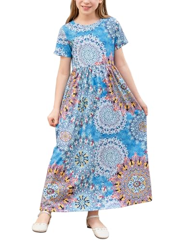 {"about_product": ["Material and Fabric: 100 Percent Polyester, elastic and comfortable fabric without pilling. Well made as far as fabric and stitching.", "Styles and Features: Casual Loose Style, Short Sleeve Dress, Round Neck, Elastic and Pleated at Waist, Two Side Pockets, Floor Length, No lined. The material is soft, stretchy and easy to wear.", "Suitable Occasion: The best choice for Party, Banquet, Casual, Outdoor, Beach, Picnic, School, Holiday, Daily Wear, etc. Available in age: 4-12 Years Children.", "Washing and Maintenance: Hand wash or low temperature for machine wash is recommended, can use dryer.", "Height Size Attention: 43in/110cm (4-5 Years), 47in/120cm (6-7 Years) , 51in/130cm (7-8 Years), 55in/140cm (9-10 Years), 59in/150cm (11-12 Years), 63in/160cm (12-13 Years)."], "product_description": null, "product_information": {"ASIN": "B0B55TRPGX", "Department": "girls", "Customer Reviews": "4.7 4.7 out of 5 stars \n\n (9,393)", "Best Sellers Rank": "#8,975 in Clothing, Shoes & Jewelry (See Top 100 in Clothing, Shoes & Jewelry) #6 in Girls' Casual Dresses", "Package Dimensions": "12.6 x 9.45 x 0.31 inches; 8.82 ounces", "Date First Available": "November 29, 2021"}, "product_details": {"Origin": "Imported", "Fabric type": "100% Polyester", "Closure type": "Pull On", "Care instructions": "Machine Wash, Hand Wash Only"}}