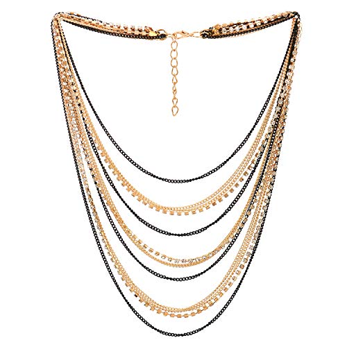 {"about_product": ["18K Gold-Plated Color Waterfall Multi-Strand Chains Statement Collar Necklace with Rhinestones Chains, Dress", "1)Sizes: Details shown on listing picture", "2)Length: 38CM(14.96\")", "3)Total Weight: 44.1g", "4)Material: Alloy 18K Gold-Plated;Rhinestones", "5)Package: Jewelry Box with Brand Name COOLSTEELANDBEYOND"], "product_description": "*Metal Color: Silver & Black\n1)Sizes: Details shown on listing picture\n2)Length: 36CM(14.17\")\n3)Total Weight: 42.1g\n4)Material: Alloy, Rhinestones\n\n *Metal Color: 18K Gold-Plated & Black\n1)Sizes: Details shown on listing picture\n2)Length: 38CM(14.96\")\n3)Total Weight: 43.9g\n4)Material: Alloy 18K Gold-Plated;Rhinestones\n\n *Metal Color: Black\n1)Sizes: Details shown on listing picture\n2)Length: 38CM(14.96\")\n3)Total Weight: 44.5g\n4)Material: Alloy; Rhinestones\n\n *Metal Color: Silver\n1)Sizes: Details shown on listing picture\n2)Length: 38CM(14.96\")\n3)Total Weight: 42.4g\n4)Material: Alloy; Rhinestones\n\n *Metal Color: 18K Gold-Plated\n1)Sizes: Details shown on listing picture \n2)Length: 38CM(14.96\")\n3)Total Weight: 44.1g\n4)Material: Alloy 18K Gold-Plated; Rhinestones \n\n *Metal Color: Grey & Black\n1)Sizes: Details shown on listing picture\n2)Length: 38CM(14.96\")\n3)Total Weight: 44.5g\n4)Material: Alloy; Rhinestones\n\n *Metal Color: Silver & Black-02\n1)Sizes: Details shown on listing picture\n2)Length: 38CM(14.96\")\n3)Total Weight: 23.6g\n4)Material: Alloy; Rhinestones and Simulated crystal\n\n *Metal Color: Silver & Black-03\n1)Sizes:Details shown on listing picture\n2)Length:41CM(16.14\")\n3)Total Weight:28.8g\n4)Material:Alloy\n\n *Metal Color: 18K Gold-Plated & Black-02\n1)Sizes: Details shown on listing picture\n2)Length: 54CM(21.26\")\n3)Total Weight: 54.2g\n4)Material: Alloy\n\n *Metal Color: 18K Rose-Gold-Plated\n1)Sizes: Details shown on listing picture\n2)Length: 38CM(14.96\")\n3)Total Weight: 44.3g\n4)Material: Alloy 18K Rose-Gold-Plated; Rhinestones \n5)Package: Jewelry Box with Brand Name COOLSTEELANDBEYOND", "product_information": {"ASIN": "B085VT7GHN", "Department": "womens", "Manufacturer": "COOLSTEELANDBEYOND", "Customer Reviews": "3.7 3.7 out of 5 stars \n\n (639)", "Product Warranty": "For warranty information about this product, please click here", "Best Sellers Rank": "#148,741 in Clothing, Shoes & Jewelry (See Top 100 in Clothing, Shoes & Jewelry) #19 in Women's Collar Necklaces", "Date First Available": "March 13, 2020"}, "product_details": {"Gem type": "No Gemstone", "Material": "Alloy; Rhinestones", "Chain type": "Strand", "Clasp type": "Lobster", "Metal type": "Alloy", "Item display length": "38 centimeters"}}