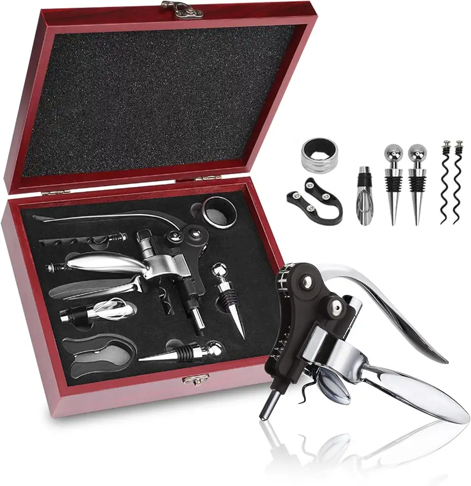 Wine Bottle Opener Gift Set - 8 PCS Corkscrew Opener with Wood Case, Stainless Steel Opener Kit for Birthdays & Weddings