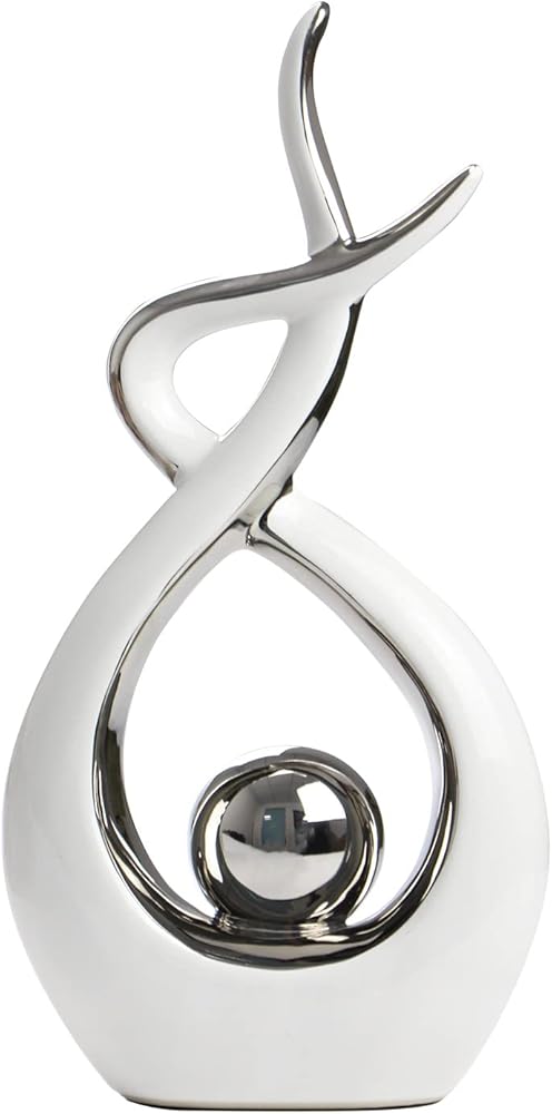 {"about_product": ["【DEMENSION】:The small size of the unique ceramic abstract figurine decoration is 6.7*2.36*10.63inch ,the large size is 6.3*2.36*12.2inch, right-sized sculptures for home decor.", "【MATERIAL】:Constructed of high quality Ceramic,When you put it in a place with good light, it will reflect bright colors to catch your eye, enhance the owner's taste.", "【GREAT FOR ANY OCCASION】:It can be table centerpieces for dining room or living room or office, coffee table decor, fireplace decoration, TV stand decoration,also it can be gift for business gift or for you friend.", "【UNFORGETTABLE GIF 】 If you’re looking for that perfect wedding, anniversary, birthday, housewarming or Mother’s Day gift, this figurine is guaranteed to spark a smile on anyone’s face. Click ‘Add to Cart’ now!", "【DESIGN】 The combination of two bright colors does not conflict but highlights unique beauty,The two horns are entangled like a pair of lovers who are in love and cannot be separated, Bottom protectors prevent scratches on tables and countertops."], "product_description": null, "product_information": {"UPC": "739641130608", "ASIN": "B096ZXP8TQ", "Size": "Large", "Brand": "Norrclp", "Color": "White and Silver", "Style": "Decor,Modern,Unique", "Theme": "Home Decor,Abstract", "Material": "Ceramic", "Finish Type": "Glossy", "Item Weight": "1.72 pounds", "Manufacturer": "Norrclp", "Mounting Type": "Tabletop", "Collection Name": "All", "Number of Items": "1", "Best Sellers Rank": "#50,729 in Home & Kitchen (See Top 100 in Home & Kitchen) #66 in Statues", "Cartoon Character": "Abstract", "Item model number": "SJTG-SJT-BR#-HOMEPC-190722-B096ZXP8TQ", "Product Dimensions": "2.36\"D x 6.7\"W x 10.63\"H", "Date First Available": "April 28, 2021", "Product Care Instructions": "Wipe Clean", "Recommended Uses For Product": "Home,Living,Office,Table"}, "product_details": {"Brand": "Norrclp", "Color": "White and Silver", "Style": "Decor,Modern,Unique", "Theme": "Home Decor,Abstract", "Material": "Ceramic"}}