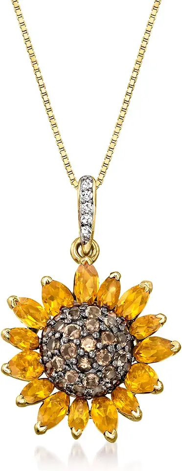 Ross-Simons 1.70 ct. t.w. Citrine and .80 ct. t.w. Smoky Quartz and .10 ct. t.w. White Topaz Sunflower Pendant Necklace in 18kt Gold Over Sterling. 18 inches