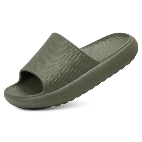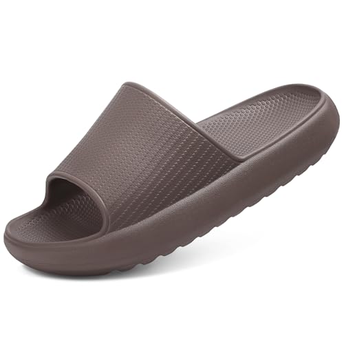 {"about_product": ["????? ???? ??????????:Made of extremely soft EVA, these sandals for women 2025 are supper squishy and lightweight, bring you a real cloud walking experience.", "???????? ????? ???????: 1.6\" thick sole and slightly arch support provide supreme shock absorption and unbeatable cushioning, help relieve tired feet and foot pains like Plantar Fasciitis, Swollen Feet.", "?????? ???????: These women's sandals slides are incredibly water-friendly, and buoyant. Unique design and versatility make them suitable for walking and other casual summer activities.", "???? ???? & ???????: Sturdy rubber outsoles with waved texture provide good traction and protection, even if they get wet, giving you a secure footing on the slick floor, great for the pool, shower, or beach.", "???? ????: Pillow slippers easily cleaned with water or a damp towel, and they are quick to dry. It is important to note that they will shrink when exposed to the sun, please avoid exposure to high temperatures for a long time."], "product_description": "Cloud slides feature a concise style and a solid design, suitable for all seasons and occasions such as the bathroom, indoor bedroom, living room, swimming pool, outdoor beach, holidays, spas, leisure activities, public showers, steam rooms, etc. This makes our sandals for women 2025 the ideal choice for various settings.The supportive nature of the EVA material can offer compression resistance. The deep heel cup, along with the cushioned and rebound thick sole, can provide ultra cushioning. When you take a bath, our shower slippers can also protect you from falling due to their strong non-slip ability. Moreover, the quick-drying and breathable properties can offer a more comfortable life experience.", "product_information": {"ASIN": "B0FVSP2Y9B", "Customer Reviews": "4.2 4.2 out of 5 stars \n\n (4,861)", "Product Warranty": "For warranty information about this product, please click here", "Best Sellers Rank": "#3,822 in Clothing, Shoes & Jewelry (See Top 100 in Clothing, Shoes & Jewelry) #8 in Women's Slide Sandals #9 in Men's Sandals", "Date First Available": "October 11, 2025"}, "product_details": {"Closure type": "Pull-On", "Sole material": "Warm Tips: Avoid exposure to the sun for a long time, in case EVA material shrank and deformed.", "Inner material": "Ethylene Vinyl Acetate (EVA)", "Outer material": "Ethylene Vinyl Acetate (EVA)"}}