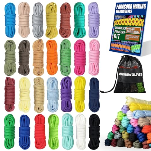 {"about_product": ["Our 550 paracord cord kit with 28 different colors, each 10 feet long. In order to help beginners get started quickly, we provide you with 3 kinds of starter paracord weaving instructions.", "HIGH QUALITY PARACORD - Type III Commercial Grade parachute cord with a minimum breaking strength of 550 lbs. The 7 Inner strands are surrounded by a tightly woven sheath. It will not let you down in times of need.", "IDEAL GIFT CHOICE - The paracord kit can make enough bracelets and crafts, hold a Paracord bracelet making party, and invite your family and friends to a fun handcrafting day! It's a perfect gift for someone close to them, they can use it to practice craft skills, encourage creativity, experience fun and enjoy the entertainment that comes with creating!Develop a love for arts and crafts that will be rewarding for years to come.", "MULTI-PURPOSE USE - You can keep this your home, garage, tool box, shed, fishing boat, backpack, hike pack, use as shoe laces, or use it for fishing line, sewing, repairs, crafting, and more!"], "product_description": null, "product_information": {"ASIN": "B09BKK2MGC", "Brand": "WEREWOLVES", "Color": "28 Colors-lucky", "Style": "Custom", "Material": "Nylon", "Unit Count": "280.0 Feet", "Item Length": "120 Inches", "Item Weight": "13.7 ounces", "Line Weight": "550 pound", "Manufacturer": "WEREWOLVES", "Number of Items": "28", "Tensile Strength": "550 Pounds", "Best Sellers Rank": "#23,922 in Sports & Outdoors (See Top 100 in Sports & Outdoors) #57 in Tactical Paracord", "Item model number": "001", "Date First Available": "September 2, 2021", "Maximum Tension Load": "550 Pounds"}, "product_details": {"Brand": "WEREWOLVES", "Color": "28 Colors-lucky", "Style": "Custom", "Material": "Nylon", "Item Weight": "0.39 Kilograms"}}