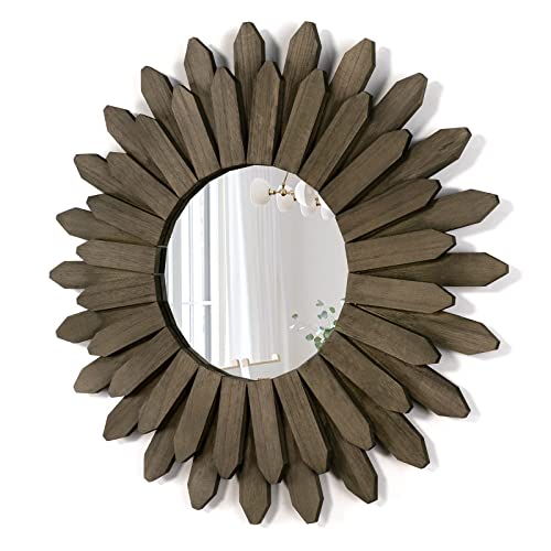 {"about_product": ["Handmade Shabby Chic Decorative Mirror: This country rustic mirror made of solid wood, torched finished features carbonized black color, and the beautiful wood texture makes it an antique accent. Two-layer wood pieces make it a stylish and eye-catching wall art on your wall", "Boho Wall Decor 12 In Mirror: The design of wood sunburst base on the element of boho style, it will be a nice boho wall art and goes well with your boho decor, farmhouse decor country rustic decor,modern deocr style; A perfect room decorations for your bedroom, living room, bathroom, kitchen, fireplace, entryway, home office, school, new partment, guest room of hotel", "No Distortion Mirror: This vintage mirror made of high quality high polish silver glass which can prevent distortion, which give you a real HD imaging. High quality coating for the ultimate durability and rust protection", "Easy to Hang at Anywhere You Want: Measure at 12 inch diameter with wood frame and diameter of 5.8 inch for mirror; Hang this stunning mirror in your bedroom above the bed, in your hallway or entryway, over your living room sofa.Comes with anchor and screw, quite easy to hang on the wall or lean on wall at desk, no any assembly", "Aesthetic Gift Idea: This shabby chic decorative piece could be a house warming gifts for new home or new apartment. your friends at birthday,Christmas,Thanksgiving Day or New Year gift"], "product_description": null, "product_information": {"ASIN": "B09BLB3BFM", "Size": "12 inch (1 pack)", "Brand": "Honiway", "Color": "Carbonized Black", "Shape": "Sunburst", "Style": "Bohemian,Farmhouse,Antique.Vintage.Rustic", "Theme": "Antique,Sunburst,Rustic", "Material": "Wood", "Room Type": "Bathroom, Bedroom, Kitchen, Living Room, entryway", "Is Hanging": "Yes", "Finish Type": "torched finish", "Frame Color": "Black", "Item Weight": "1 pounds", "Manufacturer": "Honiway", "Mounting Type": "Wall Mount", "Frame Material": "Wood", "Number of Items": "1", "Special Feature": "sunburst design", "Number of Pieces": "1", "Assembly Required": "No", "Best Sellers Rank": "#31,056 in Home & Kitchen (See Top 100 in Home & Kitchen) #28 in Wall-Mounted Mirrors", "Product Dimensions": "12\"L x 12\"W", "Date First Available": "October 14, 2021", "Specific Uses For Product": "Bathroom"}, "product_details": {"Brand": "Honiway", "Shape": "Sunburst", "Room Type": "Bathroom, Bedroom, Kitchen, Living Room, entryway", "Frame Material": "Wood", "Product Dimensions": "12"L x 12"W"}}