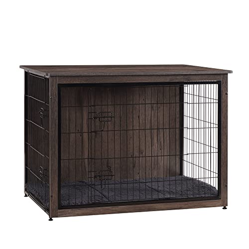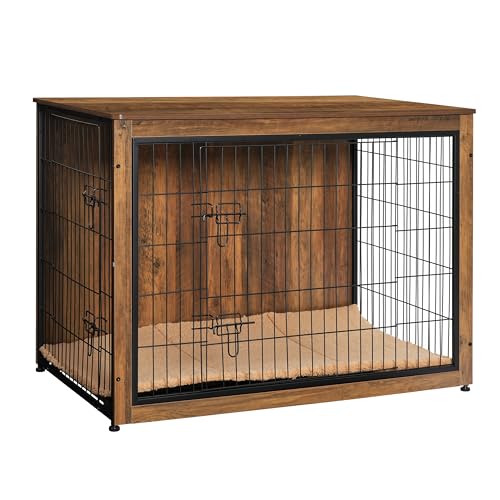 {"about_product": ["【Multi-functional】 This pet furniture can be used as pet crate ,also as a side table, end table or night stand.The wide top provides enough place to put some decorations such as small/medium plant, magazines, family picture frames and night lamps and so on.", "【Double doors design & Adjustable feet】 Your pet will go in and out easily with double doors. When the floor is not flat , this side table can be kept stable by the adjustable feet.", "【Particleboard and wire construction】 Chew-resistant construction for pet-safe durability and long service life.", "【Dog crate with Cushion】 Matching cushion in the crate take your dog a warm and more comfortable sleep, and also we use the wooden plate at the bottom, no pet foot jamming, more safety.", "【Size selection】 please be sure to measure your pet's height and length data before you buy, refer to the purchase advice to choose the right crate; if you find it difficult to choose, you can leave your pet's breed, height and length in the Q&A area, we will immediately recommend the right crate for you!"], "product_description": null, "product_information": {"ASIN": "B09LMGGG7W", "Size": "27.2\"L x 20.1\"W x 23.6\"H", "Color": "Dark Gray", "Material": "Wood", "Brand Name": "Dwanton", "Item Weight": "29.8 pounds", "Manufacturer": "DWANTON", "Number of Items": "1", "Included Components": "Stand", "Breed Recommendation": "Medium,Small", "Date First Available": "March 28, 2022", "Item Dimensions LxWxH": "27.2 x 20.1 x 23.6 inches", "Target Audience Keyword": "dogs", "Specific Uses for Product": "Indoor", "Item Package Dimensions L x W x H": "29.5 x 24.8 x 5 inches"}, "product_details": {"Brand": "Dwanton", "Material": "Wood", "Special Feature": "Adjustable, Comfortable, Durable, Secure, Warm", "Product Dimensions": "27.2"L x 20.1"W x 23.6"H", "Specific Uses For Product": "Indoor"}}
