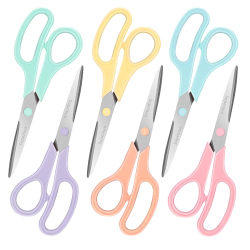 {"about_product": ["All Purpose Scissors -- Heavy duty scissors, great for most regular household tasks, such cutting through paper, thin cardboard, poster board, light ribbon, tape, photos, light fabric, card stock, medium plastic, foam, foil, burlap, canvas,Perfect for sewing, tailoring, quilting, dressmaking, cutting patterns, alterations, hand craft", "Premium Multipurpose Scissors -- 6 excellent different colored sissors can be used in different places, comfortable to use in office, laundry room, household, kitchen, sewing rooms, craft room, in the study, school, in the bathroom, on the dresser, mail room, craft room, or other occasions. When you need it, you can quickly find it. Keep out of reach of toddler", "Ultra Sharp Scissors -- To achieve the performance you expect, every siccors are made of rugged, high-density stainless steel blades that are 3 times harder than ordinary stainless steel, lighter, stronger and sharper, more comfortable! Suitable for teachers' middle/high school classroom supplies, office supplies, sewing supplies, craft supplies, teacher supplies, student supplies", "Comfortable and Safety Scissors --Excellent ABS handle wrapped with semi-soft rubber at inner circle, can be used left- or right-handed. Great as office scissors, school scissors, sewing scissors, sharp scissors, craft scissors, fabric scissors, household scissors, garden scissors, craft shears, left handed scissors, older kids scissors, classroom scissors, students scissors, teachers scissors, scissors bulk", "8 inch Scissors Bulk -- 6-pack of 8-inch scissors for office, scissors for school, scissors for home, scissors for fabric cutting, scissors for sewing, making them ideal for almost any kinds of tasks. Great scissors for Back to School, Mother's Day, Birthday gift, Christmas stocking stuffers, Painting, Easter Day, Valentine's Day, Thanksgiving Day, Party, Happy New Year's Gift Idea."], "product_description": null, "product_information": {"ASIN": "B09NRF48SQ", "Brand": "Sopeiouo", "Color": "6 Pack Black", "Style": "Classic", "Finish": "Satin", "Material": "Acrylonitrile Butadiene Styrene, Plastic, Rubber, Stainless Steel", "Blade Edge": "Straight", "Unit Count": "6.0 Count", "Finish Type": "Satin", "Item Weight": "1 pounds", "Point Style": "Straight", "Blade Length": "4 Inches", "Manufacturer": "Sopeiouo", "Blade Material": "Stainless Steel", "Handle Material": "Plastic", "Number of Items": "1", "Hand Orientation": "Ambidextrous", "Best Sellers Rank": "#643 in Arts, Crafts & Sewing (See Top 100 in Arts, Crafts & Sewing) #14 in Craft Scissors", "Item model number": "8 inch", "Product Dimensions": "8\"L x 2.9\"W", "Batteries Included?": "No", "Batteries Required?": "No", "Included Components": "scissors", "Date First Available": "February 24, 2022", "Item Package Quantity": "1"}, "product_details": {"Brand": "Sopeiouo", "Color": "6 Pack Black", "Material": "Acrylonitrile Butadiene Styrene, Plastic, Rubber, Stainless Steel", "Blade Material": "Stainless Steel", "Product Dimensions": "8"L x 2.9"W"}}