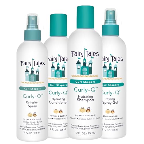 {"about_product": ["Kids Curly Hair Product: Kids Curly Q Shampoo and Conditioner is specialized for curly hair, to detangle and hydrate locks to enhance the natural curl. Use together with Curly Q Spray Gel for best results.", "Curly Hair Shampoo and Conditioner: Defines curl, tame frizz and detangle unruly knots. Uses plant based extracts and natural ingredients such as aloe, jojoba, vitamin B, and murumuru butter to nourish, moisturize, and detangle curly and wavy hair.", "Made with Honest Ingredients: This curly hair shampoo and conditioner for kids is enriched with Murumuru butter and rice amino acids to moisturize for lasting hydration, frizz control and curl definition. Use with your favorite wide tooth curly comb or brush for curls.", "No Yucky Stuff: Made with over 84% naturally derived, clean ingredients. Sulfate free, paraben free, phthalate free, gluten free, soy free, dairy free and nut-free.", "Fairy Tales Hair Care: We have been providing quality products for families since 1999. Our growing line of hair products consist of Rosemary Repel, Tangle Tamer, Curly-Q, Daily Cleanse and Sun & Swim."], "product_description": null, "product_information": {"UPC": "812729004494", "ASIN": "B09PYCGWTM", "Manufacturer": "Fairy Tales", "Customer Reviews": "4.6 4.6 out of 5 stars \n\n (4,245)", "Best Sellers Rank": "#7,763 in Beauty & Personal Care (See Top 100 in Beauty & Personal Care) #87 in Shampoo & Conditioner Sets", "Product Dimensions": "4 x 2.25 x 8.25 inches; 1.5 Pounds"}, "product_details": {"Brand": "Fairy Tales", "Hair Type": "Curly, Wavy", "Item Form": "Liquid", "Item Weight": "1.5 Pounds", "Product Benefits": "Curl Enhancing"}}