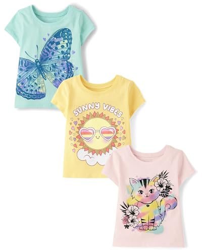 {"about_product": ["GRAPHIC T-SHIRT — A classic, comfortable fit with graphics she'll love", "FABRIC — Made of 100% cotton jersey", "DESIGN — Features a rib-knit crew neck and short sleeves", "MULTIPACK — 3-pack of graphic t-shirts: 1 style with koala and beach graphic design at front; 1 style with butterfly and flowers graphic design at front; 1 style with dino roller skating graphic design at front", "THE CHILDREN'S PLACE — We offer a huge selection of kid's clothing! Shop us for jeans, shorts, leggings, chinos, polo shirts, dresses, pajamas, and accessories."], "product_description": "The Children’s Place offers a huge selection of kid's clothing! Shop us for jeans, shorts, leggings, chinos, polo shirts, dresses, uniforms, pajamas, and accessories. Made with premium quality materials at a great value. Kids clothing made simple.", "product_information": {"ASIN": "B0DSR657MS", "Department": "baby-girls", "Manufacturer": "The Children's Place", "Customer Reviews": "4.8 4.8 out of 5 stars \n\n (3,391)", "Best Sellers Rank": "#4,404 in Clothing, Shoes & Jewelry (See Top 100 in Clothing, Shoes & Jewelry) #1 in Baby Girls' Tees", "Item model number": "3054230", "Date First Available": "January 10, 2025"}, "product_details": {"Origin": "Imported", "Fabric type": "100% Cotton", "Closure type": "Pull On", "Care instructions": "Machine Wash"}}