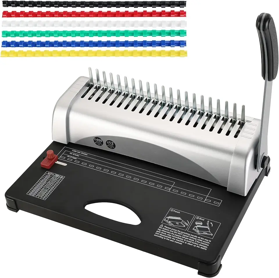 ATPEAM Comb Binding Machine 21-Holes 450 Sheets Capacity with 100 PCS 3/8'' Spines Comb Binding Machine for Letter Size, A4, A5