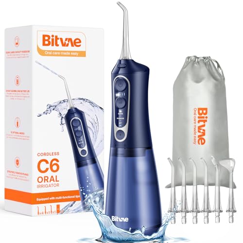 {"about_product": ["Cleaning Options for Comprehensive Oral Care: Featuring 3 modes and 5 intensity settings, our product caters to gentle, sensitive cleaning or deep, powerful cleansing for a personalized experience, promoting gum health, fresh breath, and bright smiles", "Wide Mouth Reservoir Easy to Clean:Keeping your water flosser clean is just as important as keeping mouth clean. Its detachable and wide-mouth design renders it easy to clean and refill, ensuring optimal hygiene", "Upgrade to a 40-day Battery Life for a Worry-free Travel Experience:Charges for just 4 hours and enjoys 40 days of powerful use. It also comes with a DC USB cable which is compatible with 5V1A adapter or the USB port, such as power bank, laptop, etc", "Color Your Dental Routine:Transform your daily oral care with the diverse color options of Bitvae water flosser.From subtle sophistication to bold statements,find the perfect hue to match your mood and style,adding a touch of personality to your dental regimen", "6 Replacement Tips & 360° Reach Every Corner:This water flosser equipped with 5 standard tips and 1 rotating tongue which can enjoy two years of reliable performance for a lasting oral hygiene solution. Its 360 ° rotary tips can Effortlessly clean every nook and cranny", "IPX7 Waterproof, Shower-Safe Convenience:Use it effortlessly during your shower routine without worry.Elevate your oral hygiene regimen with confidence and convenience, wherever you choose to floss", "Note: Before turning on the water flosser, keep your mouth tightly closed around the nozzle and do not take the water flosser out of your mouth while working to avoid spraying everywhere."], "product_description": null, "product_information": {"ASIN": "B0B1M7LQ6G", "Batteries": "1 D batteries required. (included)", "Manufacturer": "Bitvae", "Customer Reviews": "4.4 4.4 out of 5 stars \n\n (22,245)", "Best Sellers Rank": "#381 in Health & Household (See Top 100 in Health & Household) #4 in Power Dental Flossers", "Item model number": "C5", "Package Dimensions": "8.78 x 3.74 x 2.68 inches; 13.44 ounces", "Date First Available": "May 18, 2022"}, "product_details": {"Brand": "Bitvae", "Unit Count": "1.0 Count", "Power Source": "Battery Powered", "Special Feature": "24 Months Warranty, Large Capacity Water Reservoir, 3 Modes, 40-Day Battery Life, Multiple Tips, IPX7 Waterproof See more", "Product Benefits": "Gum Health, Prevents Bad Breath, Prevents Cavities, Removes Plaque"}}