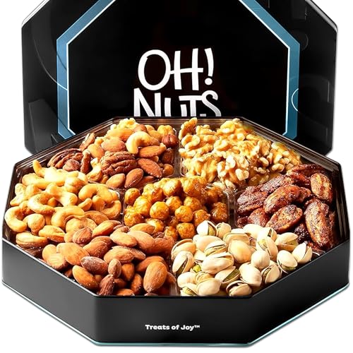 {"about_product": ["GIFT BASKET: Assorted Nuts – A perfectly balanced blend of premium roasted and crunchy nuts, offering a delicious and nutritious treat for any special occasion.", "ELEGANT GIFT TIN BOX: Surprise with a blend of premium nuts—Cashews, Almonds, Walnuts, Honey Filberts, Pecans, and Pistachios—arriving in a reusable tin. This roasted nuts assortment features an array of high-quality, freshly roasted nuts, neatly divided into 7 compartments, making it perfect for sharing with those who enjoy gourmet snacking.", "FRESHLY CRAFTED IN SMALL BATCHES: All the nuts are perfectly roasted to enhance their flavor. The process imparts a specific rich exotic flavor to these nuts, which makes them savory and irresistible to eat.", "NUTS CANDY GIFTS: If you are looking for premium roasted nuts, or holiday gifts, we have all of them and so much more. Browse our entire collection of Oh Nuts products to see what else is delicious in the snack aisle.", "REMEMBER TO CHECK THIS BOX \"This is a gift\": It's the people, gifts, and messages that make the moment memorable. Be sure to tell your special someone that you sent this as a gift by checking this box."], "product_description": null, "product_information": {"ASIN": "B0B31KSNKD", "Units": "16.0 Ounce", "Manufacturer": "Oh! Nuts", "Customer Reviews": "4.6 4.6 out of 5 stars \n\n (243)", "Best Sellers Rank": "#3,383 in Grocery & Gourmet Food (See Top 100 in Grocery & Gourmet Food) #32 in Fruit & Nut Gifts", "Package Dimensions": "11.81 x 11.34 x 2.72 inches; 2.25 Pounds"}, "product_details": {"Brand": "Oh! Nuts", "Specialty": "Dairy Free", "Package Type": "Box Set", "Nut Seed Type": "Almond, Brazil Nut, Cashew, Hazelnut, Pecan, Pistachio, Walnut", "Package Weight": "1.02 Kilograms"}}
