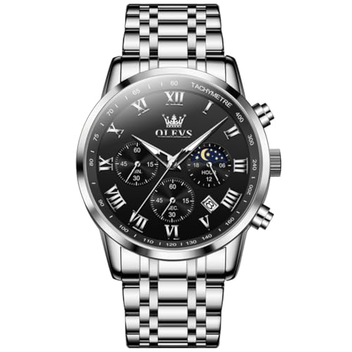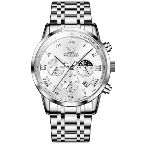 {"about_product": ["⌚【WATCH DETAILS 】Case diameter:41mm. Case thickness:11mm. An adjustable 20cm silver stainless steel band fits up to 7.8-inch wrist circumference. Net weight: 0.27lb(123g). Additional free watch adjustment tool", "⌚【UNIQUE ELEGANT DESIGN】Three multifunction sub-dials support second,minute and 24 chronographs and calendar,Easy to operate.high quality quartz movement and battery provide accurate time keeping,Solid Durable and comfortable stainless steel band fits to daily wear,scratch proof mineral glass dial", "⌚【30M WATERPROOF/LUMINOUS】The bottom cover is made of wear-resistant stainless steel with a better waterproof effect.It is water-resistant in daily-life use and can prevent sweat and water splashes. (Please do not pull out the buttons underwater)Since it is non-self-luminous,you must illuminate it with the bright light to activate the luminous function", "⌚【Premium Gifts FOR MEN】Nordic classic fashion design men's watch, clear lines draw the outline of a unique texture. This classic simple gent's wristwatch will be greatly suitable for any occasion. It is quite suitable for a present with an elegant package. This is a perfect gift for you or your friends", "⌚【OLEVS AFTER-SALE SERVE】Use our chronograph watch with no risk.30 day free return and 24 month warranty for any quality-related issue.Customer satisfaction is our first priority and we don’t compromise on the quality of the material,If you have any questions, please contact us,we will help you solve the problem"], "product_description": "", "product_information": {"ASIN": "B0B4JWSCRL", "Department": "mens", "Manufacturer": "QIYI", "Customer Reviews": "4.3 4.3 out of 5 stars \n\n (1,019)", "Product Warranty": "For warranty information about this product, please click here", "Best Sellers Rank": "#43,476 in Clothing, Shoes & Jewelry (See Top 100 in Clothing, Shoes & Jewelry) #151 in Men's Wrist Watches", "Item model number": "2858", "Package Dimensions": "5.98 x 2.64 x 1.14 inches; 6.38 ounces", "Date First Available": "June 17, 2022"}, "product_details": {"Clasp type": "Double-layer safety clasp", "Item type name": "Fashion"}}