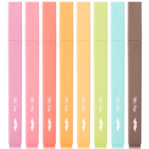 {"about_product": ["Make your notes and papers pop with our soft and gentle highlighters! This package includes 8 highlighters in assorted colors. Our highlighters are perfect for making your work and school life a little bit brighter.", "The highlighters feature durable, quick-drying ink to prevent smears and smudges. The ink is also resistant to fading so your work stays clean and clear for longer.", "Our highlighters are comfortable and easy to hold without a sore hand & don't roll around while using. The versatile chisel tip efficiently produces wide and narrow lines.", "Mr. Pen highlighters are perfect for highlighting your scriptures, notes, journals, or any books you want to read with bright and vibrant colors.", "These cute highlighters are suitable for school, college, home, office, even travel diary, schedule, work, study, notes, etc. They are also wonderful gifts for family and friends."], "product_description": null, "product_information": {"ASIN": "B0BG53HYHW", "Size": "8 Pack", "Brand": "Mr. Pen", "Color": "Candy Colors", "Grip Type": "Smooth", "Ink Color": "Pastel", "Line Size": "0.7mm", "Point Type": "Chisel", "Item Weight": "3.52 ounces", "Manufacturer": "Mr. Pen", "Material Type": "Plastic", "Number of Items": "8", "Best Sellers Rank": "#23 in Office Products (See Top 100 in Office Products) #1 in Liquid Highlighters", "Item model number": "LEGG004M237", "Package Dimensions": "5.26 x 4.17 x 0.55 inches", "Date First Available": "September 22, 2022", "Manufacturer Part Number": "LEGG004M237"}, "product_details": {"Brand": "Mr. Pen", "Ink Color": "Pastel", "Point Type": "Chisel", "Number of Items": "8", "Recommended Uses For Product": "Bible, Coloring, Drawing, Note Taking, School"}}