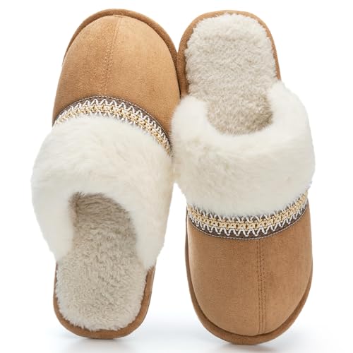 {"about_product": ["WARM AND COMFORTABLE ELEGANT SLIPPERS:Premium breathable feather yarn upper house slippers with creative color contrast design makes a pair of cozy, chic and elegant slippers for women.Premium warm fluffy lining wraps your feet for extreme comfort and keeps away from coldness.", "SIZE UPGRADE:According to the customer's suggestion,we have upgraded the material and size of fuzzy slippers.The inner material of upgraded womens slipper will be no slip, more soft and comfortable.The size is one yard smaller than the standard size.We suggest order 1 size up for average & wide foot.", "RESILIENT AND SUPPORTIVE MEMORY FOAM CUSHION:Solid high density memory foam slippers for women provide right perfect rebound strength add support and comfort for all day wear.", "ANTI-SLIP AND FLEXIBLE DURABLE RUBBER SOLE:Non-slip and flexible rubber sole to protect every step of the way, perfect for indoor and outdoor family use.", "BEST GIFT FOR BIRTHDAY THANKSGIVING CHRISTMAS OR NEW YEAR: A pair of warm and cozy home slippers,great gifts for girlfriend wife mom daughter sister and your loved ones to express your warmest greetings.It will be a great surprise for your lovers and family."], "product_description": null, "product_information": {"ASIN": "B0D83WB158", "Department": "unisex-adult", "Customer Reviews": "4.5 4.5 out of 5 stars \n\n (3,133)", "Product Warranty": "For warranty information about this product, please click here", "Best Sellers Rank": "#1,206 in Clothing, Shoes & Jewelry (See Top 100 in Clothing, Shoes & Jewelry) #58 in Women's Slippers", "Package Dimensions": "10.04 x 3.86 x 2.76 inches; 12.32 ounces", "Date First Available": "October 6, 2023"}, "product_details": {"Origin": "Imported", "Sole material": "Memory Foam", "Outer material": "Faux Fur", "Fur description": "Synthetic (Fur Origin: Not Applicable)"}}