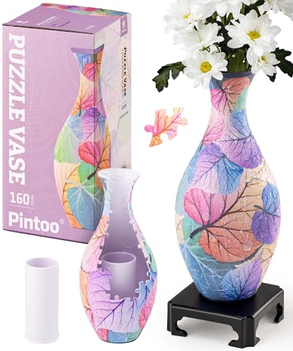 {"about_product": ["? Unique Flower Vase - Made by 160-piece 3d curved puzzle pieces with a detachable water cup and stand. The finished size is 4.4 inches in diameter and 9.5 inches in height without a stand.", "? Decorative Floral Container - 3D puzzle vase is ideal for home decoration that reflects your personality with a vivid and eye-catching pattern. The 2.3 inches diameter narrow mouth is perfect for both single and bouquet flower arrangements.", "? An Unique WOW Gift - The versatile look of this vase is a suitable gift for lovers, relatives, friends, and someone who likes to decorate their home. Great present for housewarming, weddings, holidays, or festivals like Christmas, Thanksgiving, and New Year.", "? Perfect Combination of Beauty and Brains - The curved jigsaw puzzles are connected firmly without glue, allowing you to display or use the finished 3D puzzle vase for flower arrangement after assembling it right away.", "? Challenging 3D Puzzles for Adults - The pattern on the S1033 puzzle vase is so vivid and eye-catching, it'll be sure to add a touch of personality to any room. Plus, Pintoo offers missing piece replacement for free."], "product_description": null, "product_information": {"ASIN": "B0BHHHZG64", "Brand": "Pintoo", "Color": "Colorful Leaves", "Shape": "Vase", "Style": "Classic", "Theme": "Flowers", "Import": "Imported", "Pattern": "Solid", "Material": "Plastic", "Occasion": "Christmas, Graduation, Mother's Day, Wedding", "Room Type": "Bedroom", "Finish Type": "Smooth", "Item Weight": "12.3 ounces", "Finish types": "Smooth", "Manufacturer": "Pintoo", "Assembly time": "3 Hours", "Mounting Type": "Table", "Special Feature": "Portable", "Number of Pieces": "160", "Assembly required": "Yes", "Best Sellers Rank": "#338 in Toys & Games (See Top 100 in Toys & Games) #1 in 3-D Puzzles", "Item model number": "S1034", "Batteries required": "No", "Product Dimensions": "4.4\"L x 4.4\"W x 9.5\"H", "Included Components": "3d curved jigsaw puzzle, water cup, and stand", "Warranty Description": "1 year warranty on parts.", "Recommended Uses For Product": "Indoor"}, "product_details": {"Brand": "Pintoo", "Color": "Colorful Leaves", "Shape": "Vase", "Material": "Plastic", "Product Dimensions": "4.4"L x 4.4"W x 9.5"H"}}