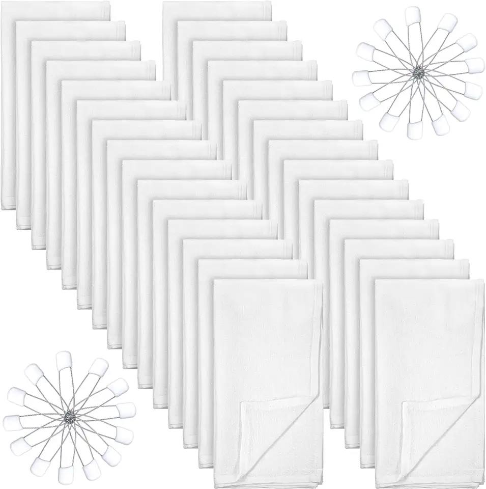 Zomiboo 30 Pack Birdseye Cotton Diapers for Babies Large 27 x 27 Inch Reusable Burp Cloths with 30 Diaper Pins for Babies Boy Girl Toddlers