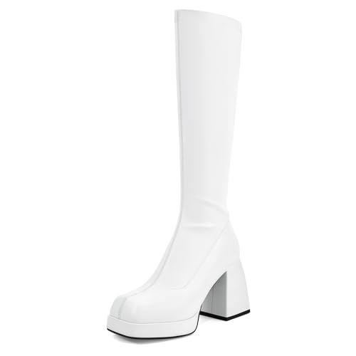 {"about_product": ["Platform boots heel height: 8 cm/3.15\", platform height: 2 cm/0.79\", shaft height: 37.2 cm/14.65\", opening: 39 cm/15.35\"", "Premium faux leather upper and soft microfiber fabric lining, the cushioned padded insole can rest assured.", "Square-toe block heel boots feature side zipper closure with stretch gore closure, easy to put on and take off.", "Classic casual design, suitable for you to wear on a variety of occasions such as daily casual, formal business and so on.", "If you find any problem with the SOVANYOU shoes, please feel free to contact us, we will help you within 24 hours!"], "product_description": "", "product_information": {"ASIN": "B0CJ6N2Q99", "Department": "womens", "Manufacturer": "SOVANYOU", "Customer Reviews": "4.2 4.2 out of 5 stars \n\n (1,425)", "Product Warranty": "For warranty information about this product, please click here", "Best Sellers Rank": "#4,242 in Clothing, Shoes & Jewelry (See Top 100 in Clothing, Shoes & Jewelry) #7 in Women's Knee-High Boots", "Date First Available": "August 14, 2023"}, "product_details": {"Shaft height": "14.57 Inches", "Sole material": "Rubber", "Outer material": "Faux Leather", "Shaft circumference": "39 centimeters"}}