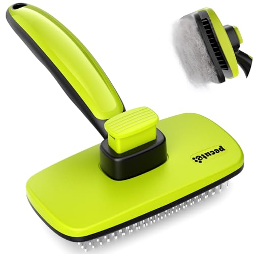 {"about_product": ["SELF-CLEANING MECHANISM : The slicker brush features a unique self-cleaning mechanism that allows you to easily removes hair from the brush with just the push of a button.", "EFFICIENT FUR REMOVAL, GENTLE ON YOUR PET'S SKIN : The pet hair brush is designed with fine 135° stainless steel bristles and gentle massage particles that effectively remove loose hair, dander, & dirt trapped beneath the fur without causing any discomfort or irritation to the pet's skin. Leave the pet's fur soft and shiny!", "SUITABLE FOR ALL COAT TYPES : The dog brush for shedding is suitable for use on dogs, cats, and small animals with all coat types, including long, short, curly, wiry, and even heavy coats.", "UNIQUE HANDLE, ERGONOMIC DESIGN : Features an ergonomic design with a non-slip handle that provides a comfortable grip. The lightweight dog brush, weighing only 89g, allows for extended periods of grooming without experiencing fatigue. This design ensures that both you and your pet are comfortable during grooming sessions.", "DURABLE & LONG-LASTING : The cat brush is made of high-quality TPR material, sturdy and durable construction that is built to last, ensuring that pet owners can enjoy its benefits for years to come."], "product_description": null, "product_information": {"ASIN": "B0C1RQ67PW", "Size": "Medium", "Color": "Green", "Style": "dog brush", "Material": "ABS+TPR+Stainless Steel", "Brand Name": "Pecute", "Directions": "Always gently follow the direction of hair growth for your pet's comfort., Divide the pet's hair and groom one section at a time for thoroughness., Ensure that the brush is not damaged. If you have any questions, please let us know., Regularly remove hair to prevent buildup. Press the button after use for easy hair removal., The pet brush may not be suitable for the following hair types: Very long hair, Very curly hair, and Fragile hair.", "Item Weight": "3.1 Ounces", "Manufacturer": "Pecute", "Number of Items": "1", "Item model number": "PGT-SB05", "Date First Available": "April 7, 2023", "Warranty Description": "*Each Pecute pet hair brush comes with 1-year manufacturer support and a 90-day full m-o-n-e-y b-a-c-k", "Item Dimensions LxWxH": "6.7 x 3.7 x 2 inches", "Target Audience Keyword": "dogs, house-cats, small-animal-pets", "Specific Uses for Product": "Cat brush for shedding, Dog brush for shedding, Dog hair brush, Pet grooming brush, Slicker brush for dogs cats", "Item Package Dimensions L x W x H": "6.61 x 4.09 x 2.44 inches"}, "product_details": {"Brand": "Pecute", "Color": "Green", "Shape": "Oblong", "Handle Material": "ABS+TPR+ Non-Slip Coating", "Bristle Material": "Stainless Steel"}}